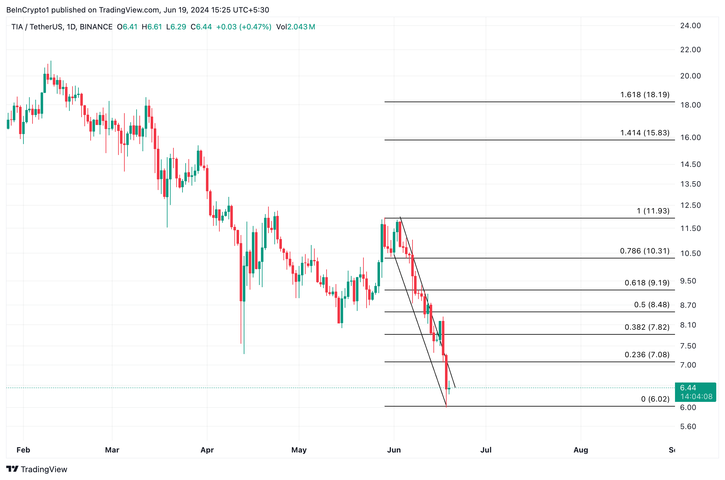 Seitdem der 30-Tage-Hoch von 10,76 USD am 29. Mai ist der TIA Kurs stark gefallen. Währenddessen zeichnet sich auf dem Preischart ein absteigender Kanal ab, was auf anhaltenden Verkaufsdruck hindeutet. Obendrein liegt der Relative Strength Index (RSI) des Tokens derzeit bei 25,8 USD und deute damit ebenfalls auf ein anhaltend bärisches Momentum hin.