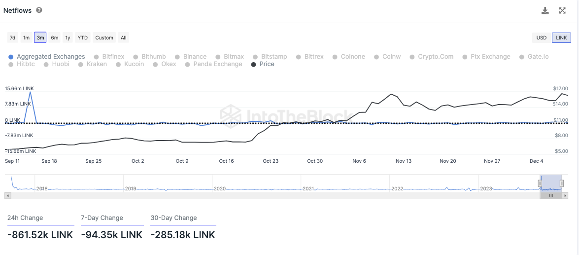 In den letzten 24 Stunden, 7 und 30 Tagen wurden deutlich mehr LINK von Börsen abgehoben als eingezahlt