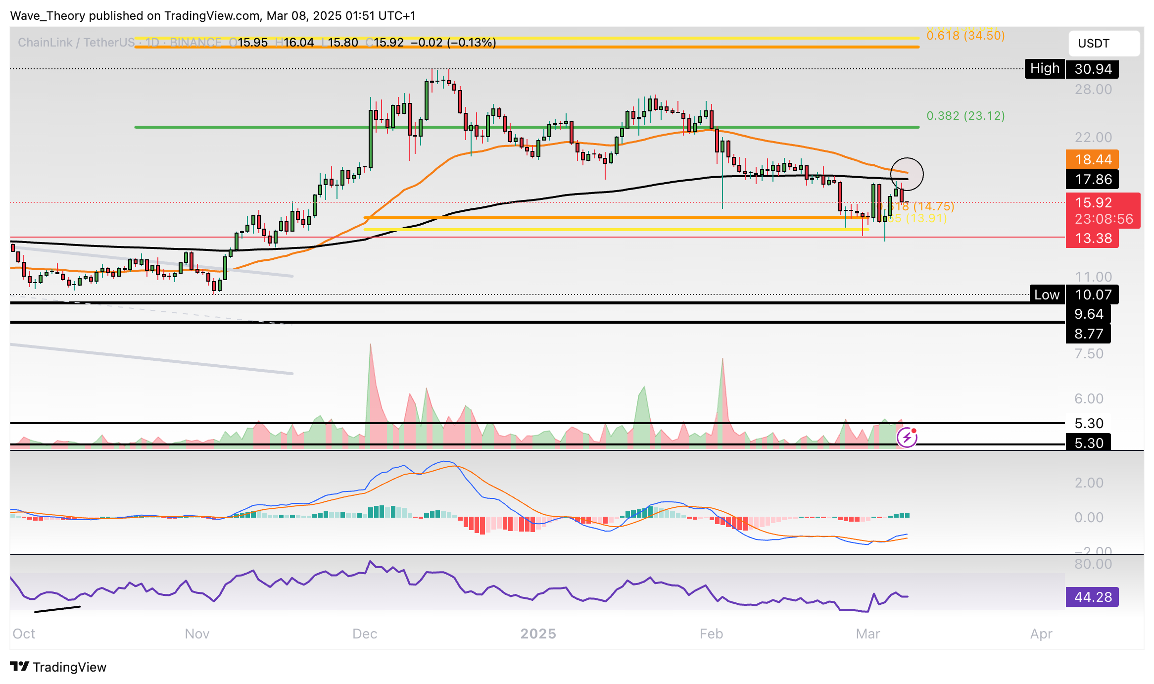 Chainlink-Prognose für Samstag, 08. März 2025: Nach einem Kursverlust von fast 50 % könnte Chainlink in diesem Monat wieder im Kurs steigen.
