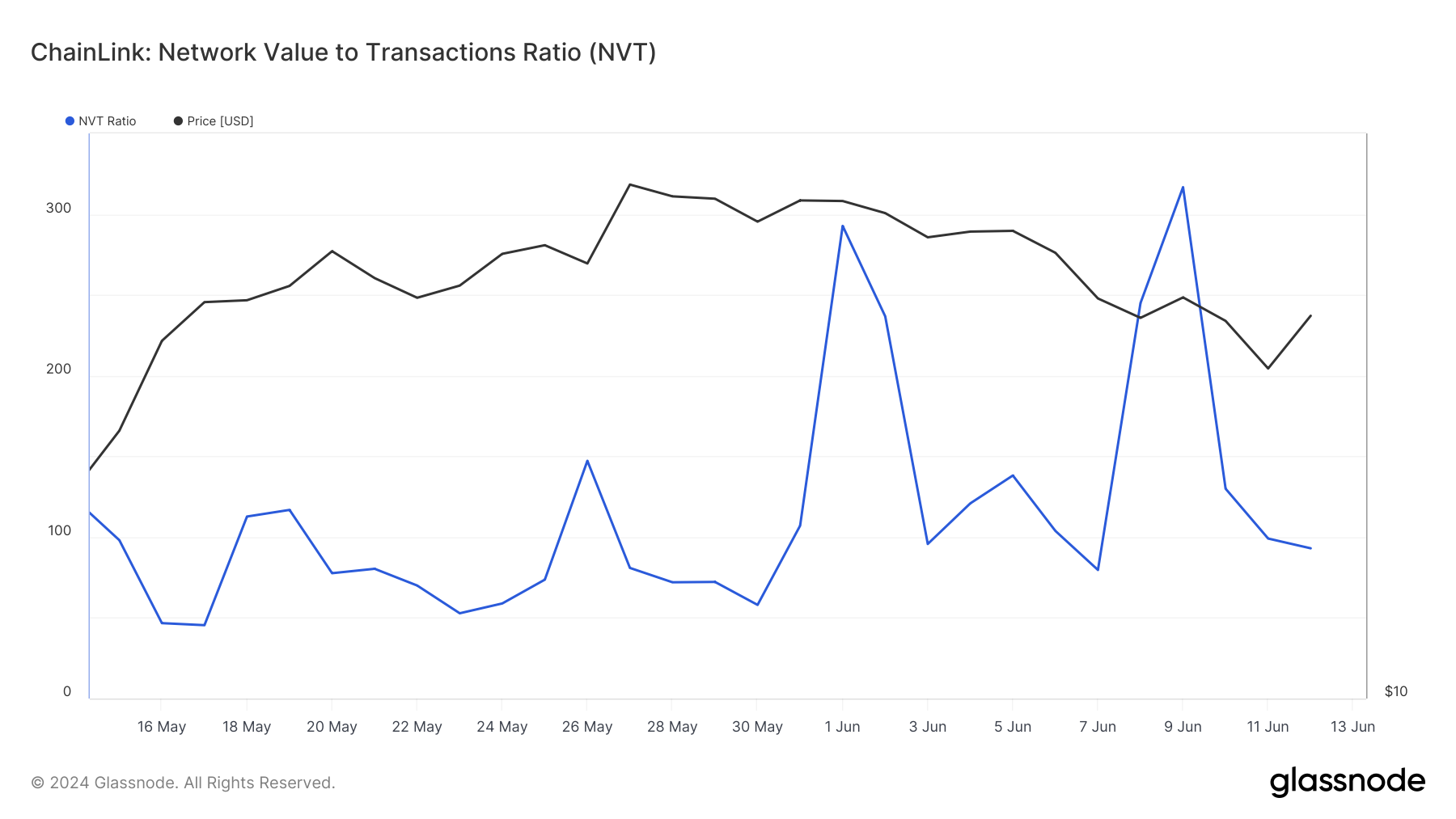 Laut Daten von Glassnode fiel der NVT-Ratio von Chainlink auf 93,04. Typischerweise bedeutet ein hoher NVT-Ratio, dass die Marktkapitalisierung das Wachstum des Transaktionsvolumens übersteigt. Oftmals bedeutet dies, dass das Netzwerk überbewertet ist und mit dem Premium-Kurs eines Tokens zusammenfällt.