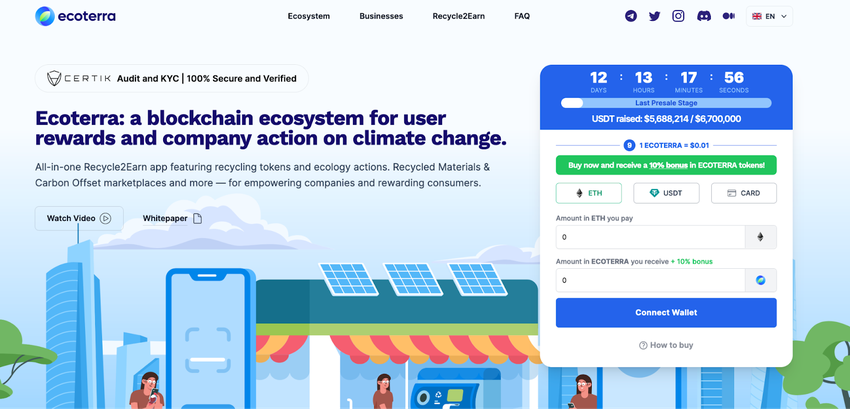 Der PreSale von $ECOTERRA-Token bietet Investoren eine einzigartige Möglichkeit, frühzeitig in das Projekt einzusteigen und von den positiven Entwicklungen zu profitieren. Aktuell befindet sich der PreSale in seiner finalen Phase, in der der Token zu einem vergünstigten Preis erhältlich ist. Dies stellt eine großartige Gelegenheit für chinesische Investoren dar, sich an dem Projekt zu beteiligen und von den langfristigen Wachstumsmöglichkeiten zu profitieren.