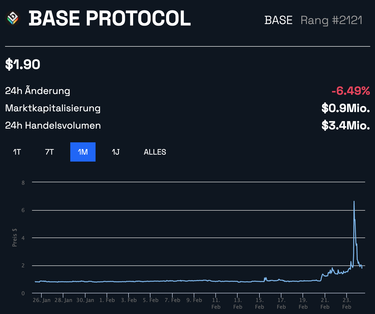 Angesichts dieser Neuigkeiten stürzten sich einige Degen Händler auf den Token des Base Protocols und ließen dessen Kurs in den Himmel schießen.