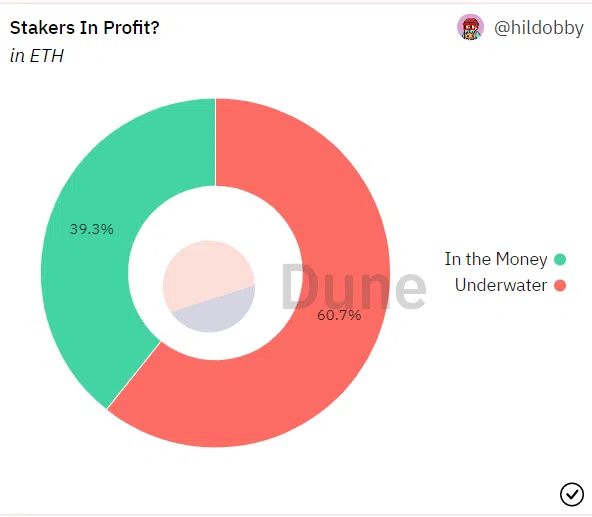 Da der Vermögenswert im letzten Jahr einen hohen Wertverlust erlitt, befinden sich etwa 60 % der Staker:innen derzeit im Minus. Sollten sie ihre ETH nach dem Mainnet Upgrade also abheben, müssen sie Verluste realisieren.