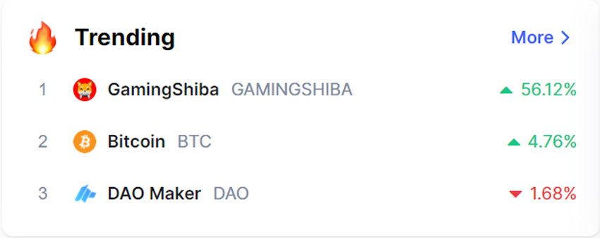 Der Streaming-, NFT- und Metaverse-Coin GamingShiba (GAMINGSHIBA) überholte am Mittwoch Bitcoin als Top Trending Coin auf CoinMarketCap.