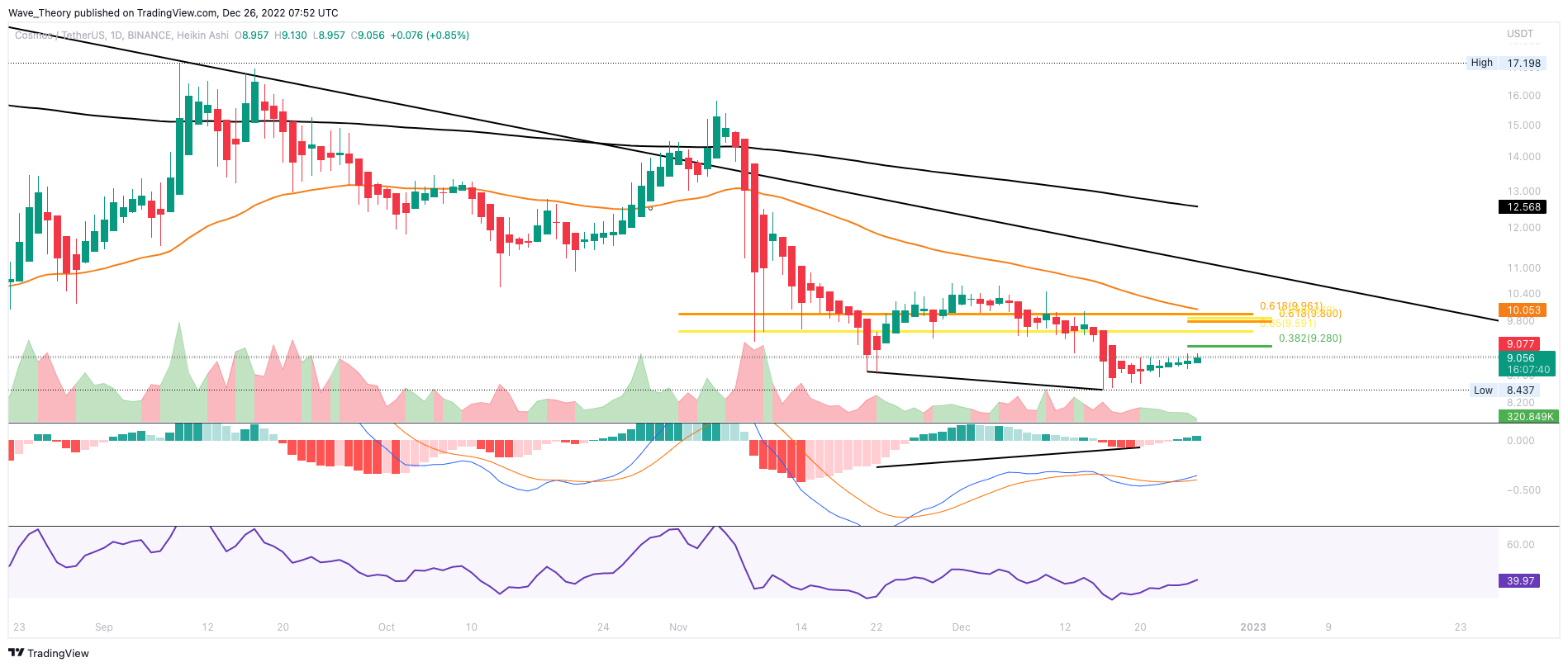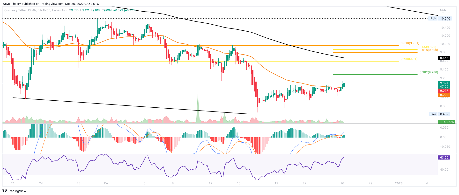 Der Cosmos Kurs befindet sich immer noch an der Golden Ratio Unterstützung bei rund 10 USD