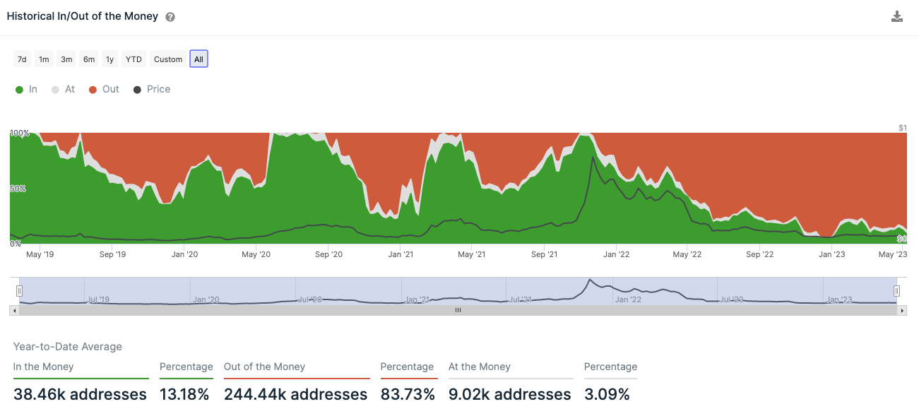 Bei einem Preis von etwa 0,41 USD oder höher könnten Tokeninhaber in Versuchung geraten, ihre jahrelangen Verluste in einen Kursgewinn umzuwandeln. Andererseits sind viele möglicherweise nicht bereit, bei einem erheblichen Verlust zu verkaufen. Infolgedessen könnte der Verkaufsdruck derzeit als gering eingeschätzt werden.