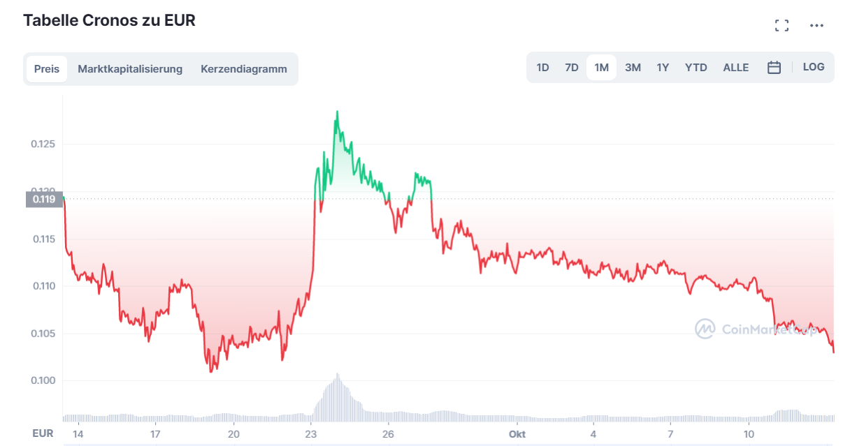 Crypto.com wurde 2016 gegründet, bedient mehr als 50 Millionen Kunden und ist laut eigener Aussage die weltweit am schnellsten wachsende globale Kryptowährungsplattform. Der Kurs des Crypto.com Coin “CRO” lässt sich von den Europaplänen scheinbar nicht zum Leben erwecken. Denn dieser notiert aktuell bei 0,10 Euro. Zur Einordnung: Das Allzeithoch lag bei knapp 0,80 Euro.
