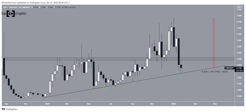 Der Krypto-Trader @TheTradingHubb veröffentlichte eine CRV-Analyse auf Twitter. Er ist der Meinung, dass der CRV Kurs bis auf 1.50 USD fallen könnte.
