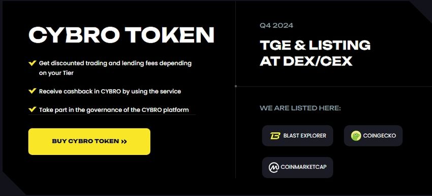 Ein wesentlicher Teil des Angebots des Ertragsaggregators ist sein Utility-Token $CYBRO, das exklusive Vorteile für Inhaber bietet. An oberster Stelle steht das traditionelle Staking-Setup der Plattform, das es Benutzern ermöglicht, passiv zu verdienen. Außerdem belohnt CYBRO Personen für die Nutzung seines Marktplatzes, was zusätzliche Vorteile wie bietet: