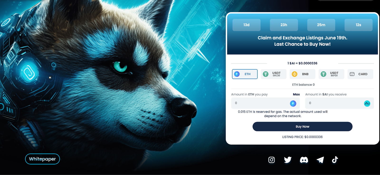 $AI-Token wurden im Presale zu einem reduzierten Preis angeboten. Diese sind inzwischen schon ausverkauft, da der Presale mehr als 15 Millionen Dollar eingebracht hat. Der $AI-Token wird auf der Plattform benötigt, um Credits für die Meme-Erstellung zu kaufen und kann jetzt noch direkt auf der Website zum Börsen-Listingpreis gekauft werden. Am 19. Juni wird $AI dann an den Kryptobörsen gehandel und kann hier ebenfalls innerhalb kurzer Zeit stark ansteigen, da der Presale schon extrem erfolgreich war.