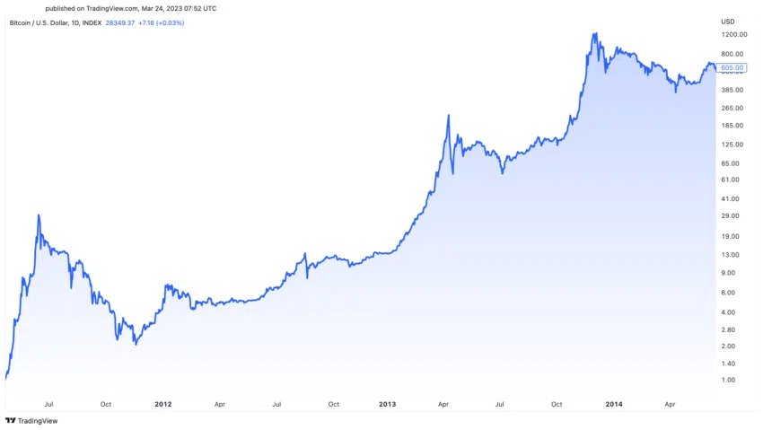 Infolge des Ereignisses 2012 stieg der Bitcoin Kurs von etwa 11 US-Dollar im November auf ein Allzeithoch von etwa 1.100 USD im November des Folgejahres – ein bemerkenswerter Anstieg.