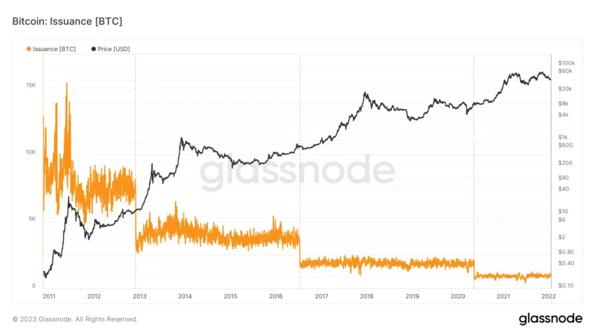 Derzeit liegen die Mining Belohnungen bei 6,25 BTC pro Block. Nach dem voraussichtlich 2024 stattfindenden Halving werden die Belohnungen auf 3,125 BTC pro Block sinken. Während die Angebotsausgabe also sinkt, steigt die Nachfrage weiter und genau deswegen rechnen Anleger:innen mit steigenden Kursen.