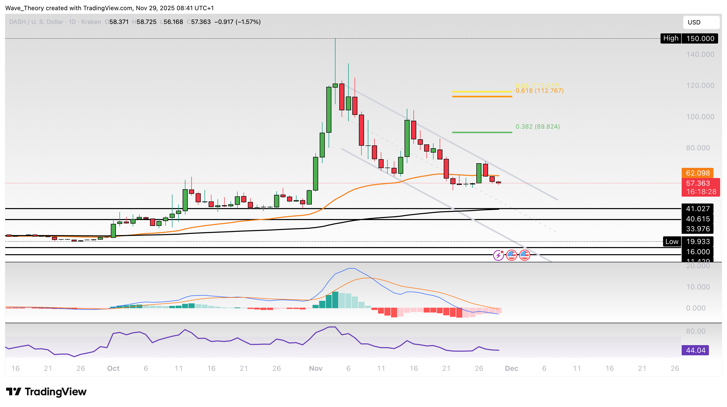 Dash-Prognose für Samstag, 29. November 2025: Nachdem der Dash Kurs in diesem Monat rund 190 % gestiegen ist, ist er anschließend auch schon wieder um rund 61,5 % gefallen.