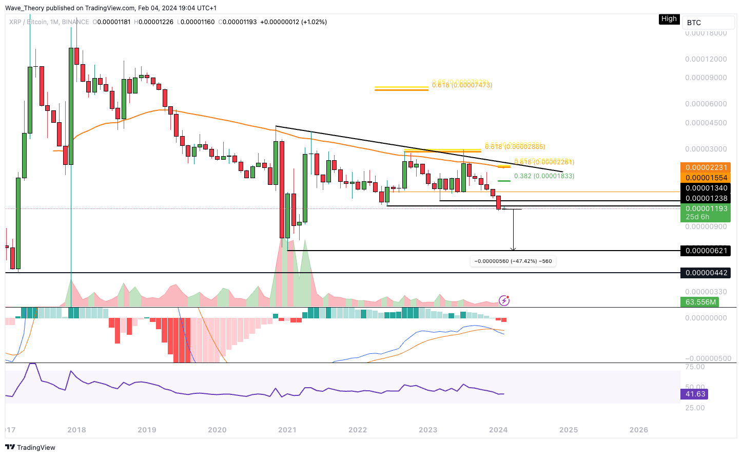 Gegen Bitcoin könnte der XRP Kurs um rund 47,4 % fallen