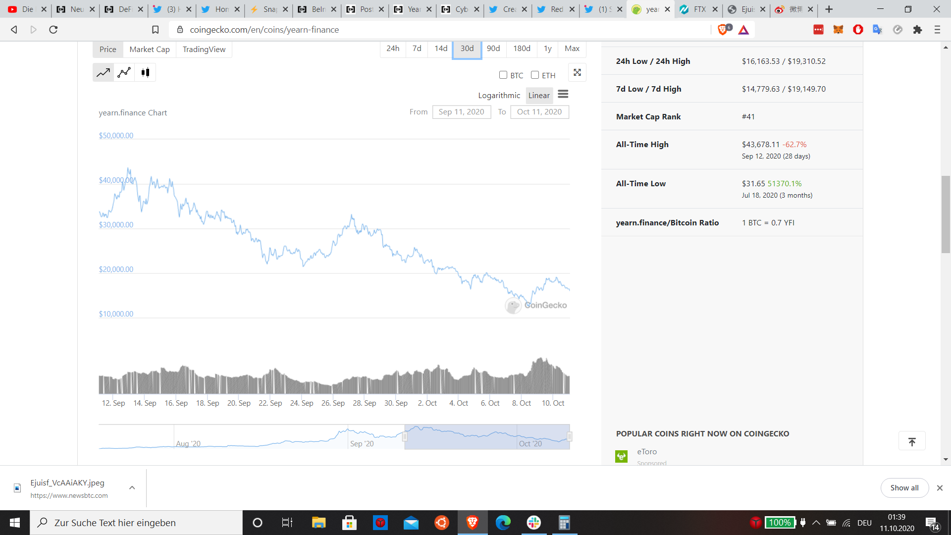 Er meinte, dass diese Position bei Weitem nicht ausreichend ist, um einen Kurscrash auszulösen. Tatsächlich zeigt sich bei YFI ein sehr organischer abfallender Kursverlauf in den letzten 30 Tagen. SBF war also zumindest nicht alleine dafür verantwortlich. Zeitgleich verloren auch viele andere DeFi Tokens an Wert.