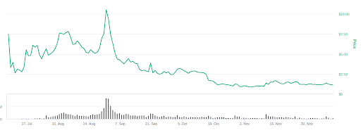 Solche hohen Farming-Erträge bedeuten normalerweise, dass das Projekt keine andere Möglichkeit hat, Nutzer anzulocken. Das Verschenken so vieler kostenloser Token führt jedoch zu einer Hyperinflation und dem endgültigen Preisverfall.