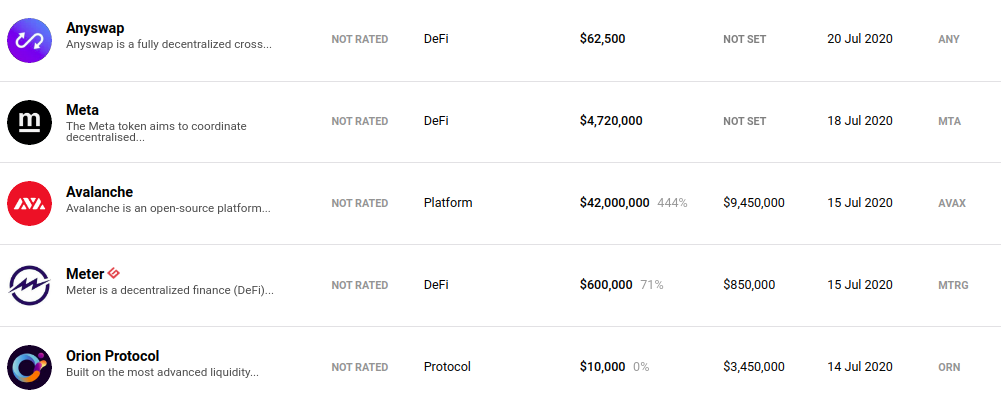 Der Grund liegt auf der Hand: Viele der Projekte, die ein IEO ohne Live-Produkt enthalten, werden verschwinden, ohne jemals eines zu starten, oder ihr Token-Preis wird zusammenbrechen oder beides. Um meinen Standpunkt zu verdeutlichen, habe ich mir die ersten DeFi-Projekte angesehen, bei denen im vergangenen Juli ein IEO durchgeführt wurde – Meter, Meta und Anyswap.