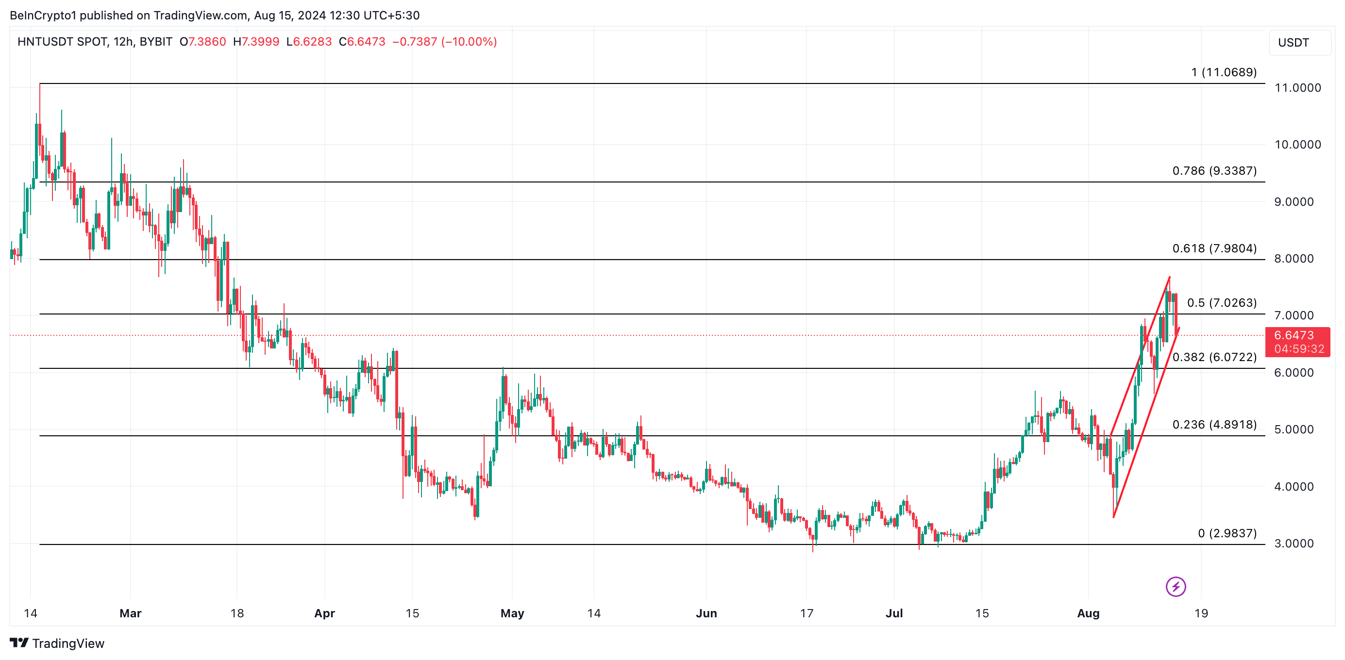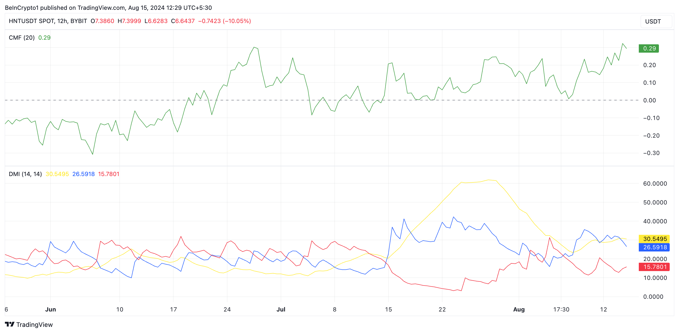 Der Rückgang könnte jedoch anhalten, wenn der Verkaufsdruck zunimmt, was HNT potenziell auf 6,01 USD drücken könnte.