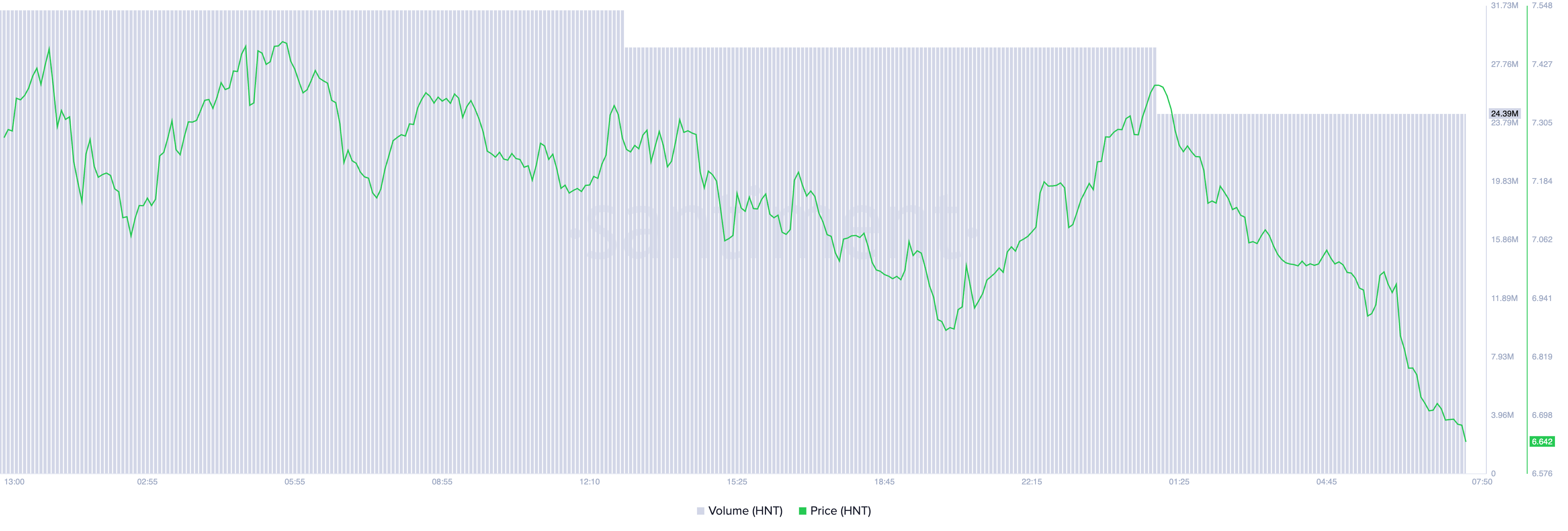 Der achtprozentige Rückgang des HNT-Kurses geht mit einem bemerkenswerten Rückgang des Handelsvolumens einher, das um 26 Prozent auf 24 Millionen USD fiel. Dies deutet darauf hin, dass das Interesse und die Nachfrage nachlassen, was weniger Käufer bedeutet und die Transaktionsaktivität reduziert.