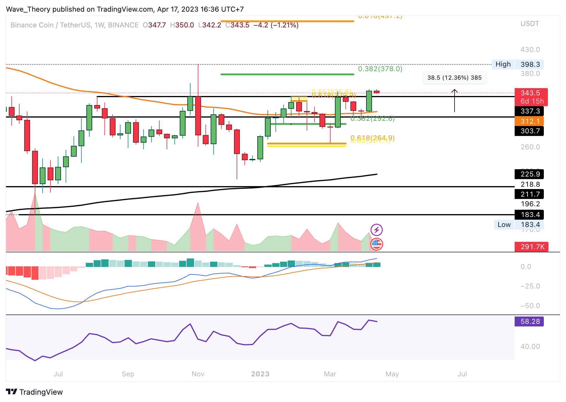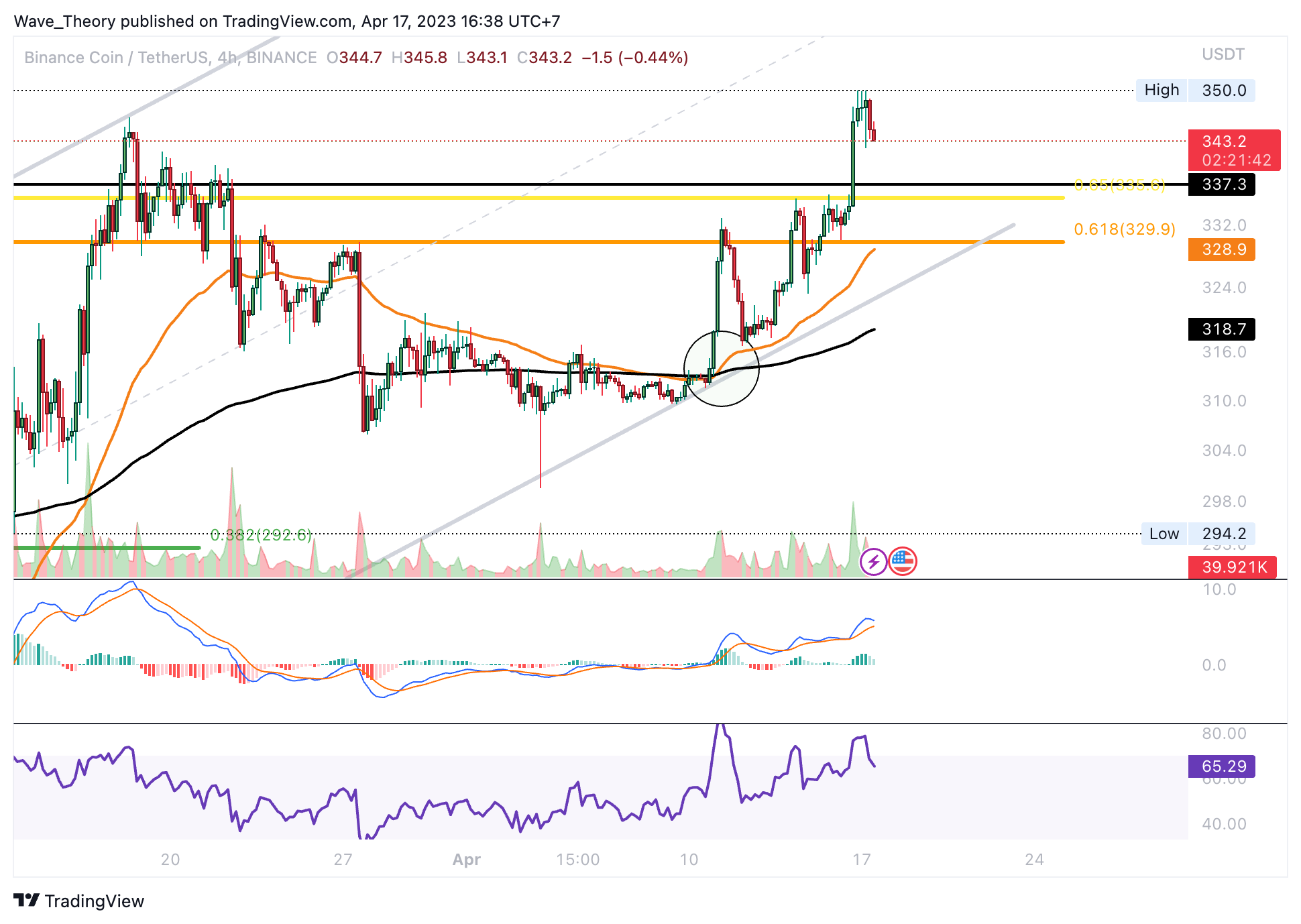 - Bei rund 337 USD wartet signifikanter Widerstand auf Binance Coin