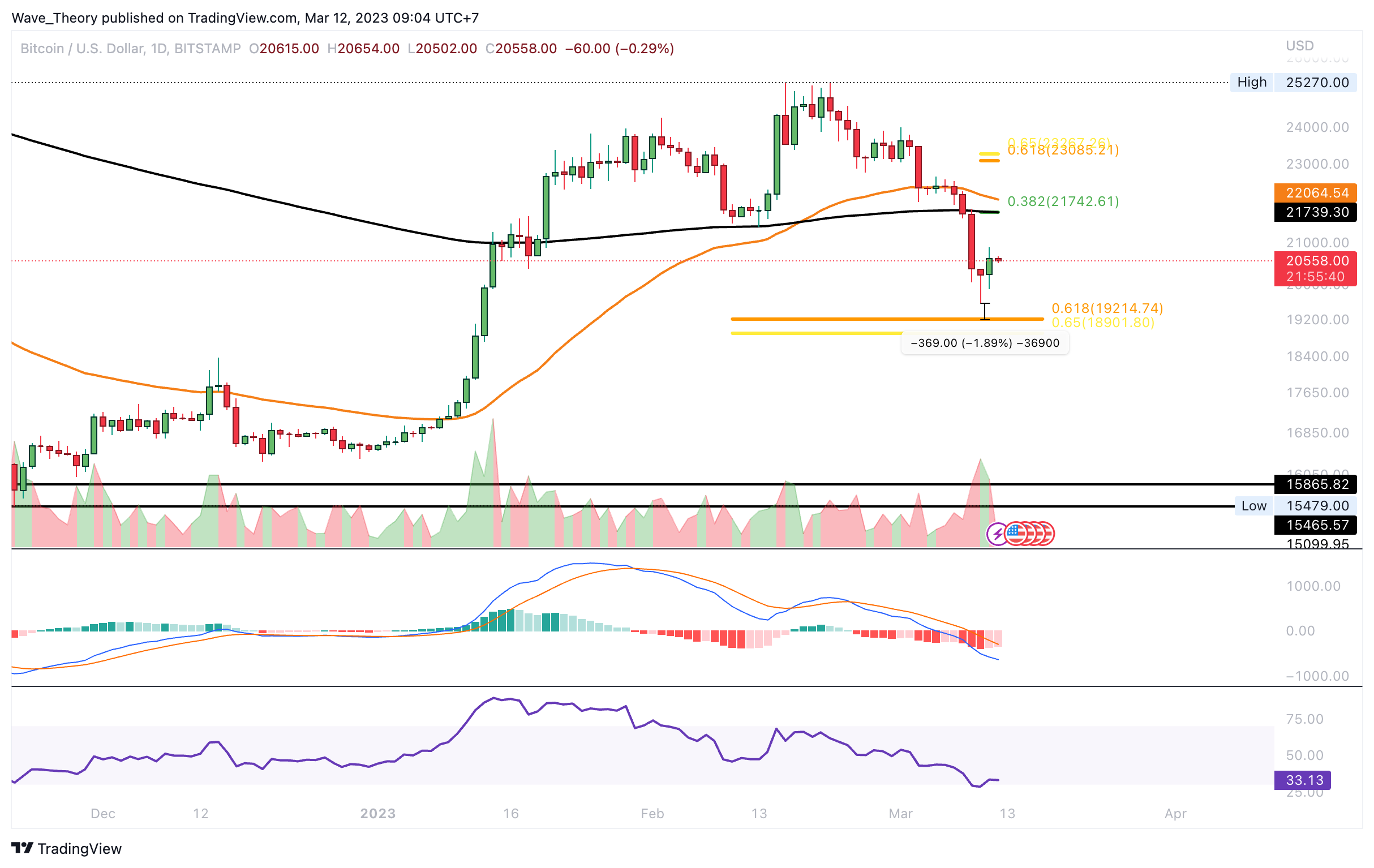 Der Bitcoin Kurs ist 1,89 % von der Golden Ratio Unterstützung bei rund 19.200 USD entfernt