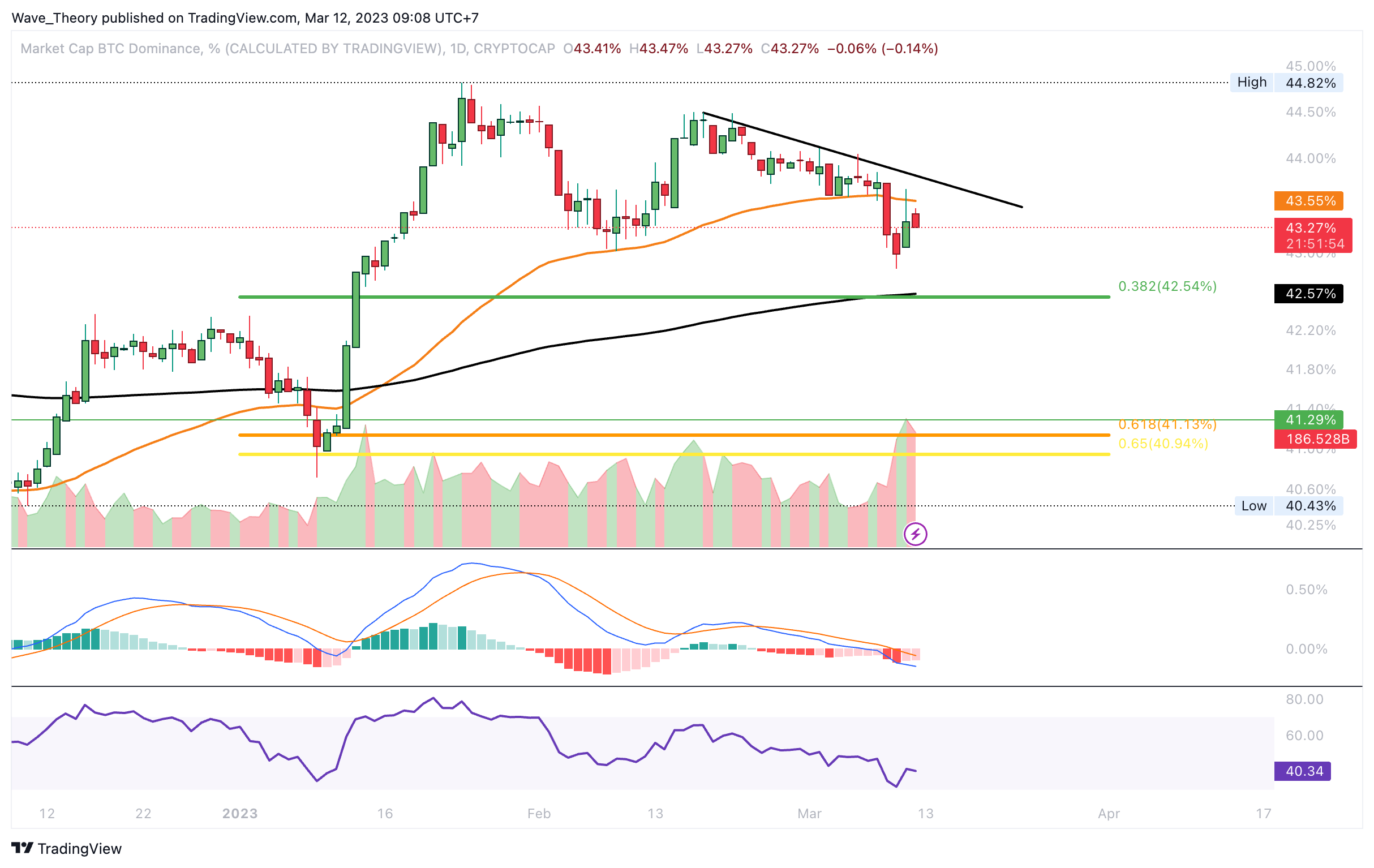 Wird die Bitcoin Dominanz am 200-Tage-EMA bei rund 42,5 % abprallen können?