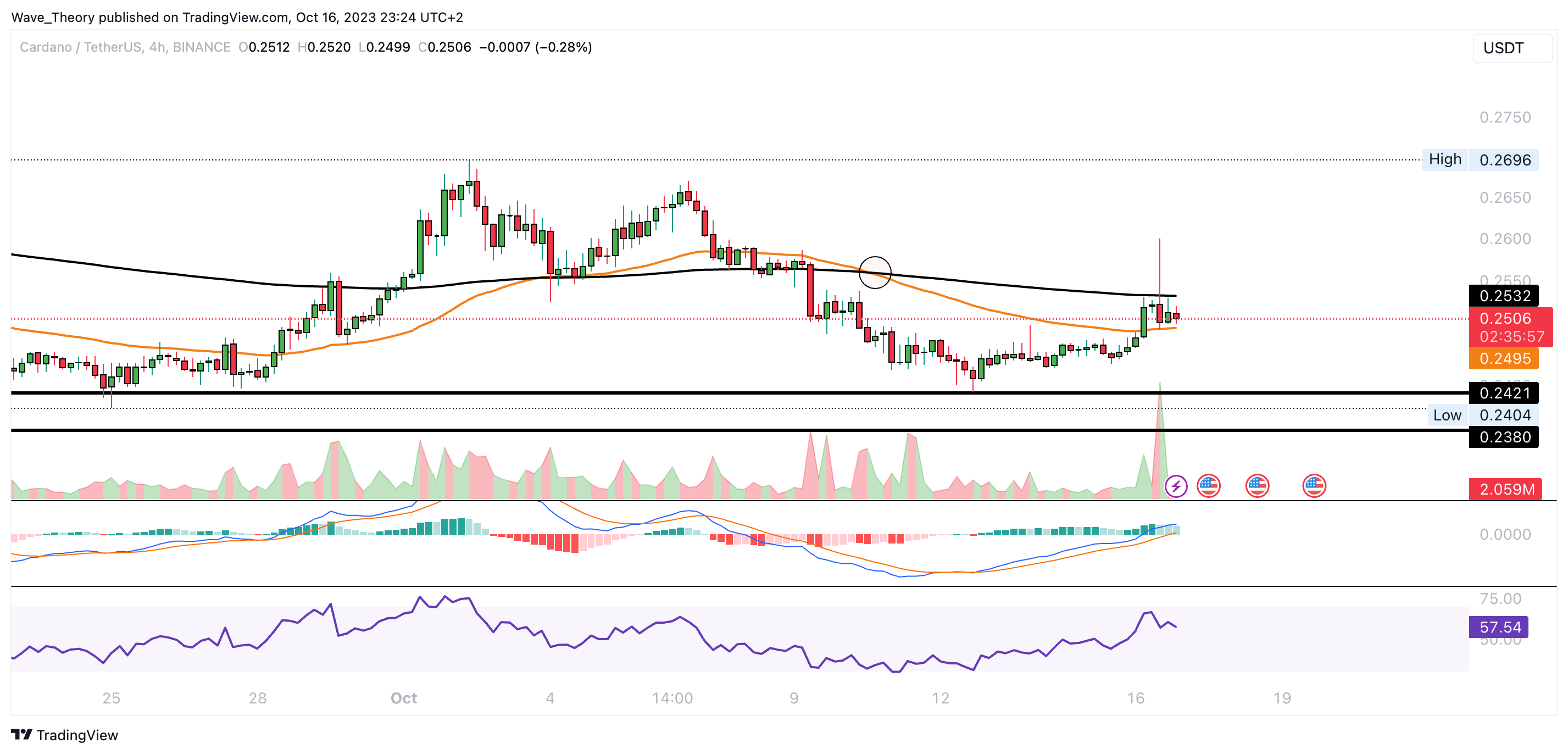 Der Cardano Kurs befindet sich seit Wochen über dem Preisniveau zwischen rund 0,238 USD und 0,242 USD, womit sich dort jetzt eine Unterstützungszone geformt hat. Daran konnte der ADA Kurs vor wenigen Tagen bullisch abprallen.