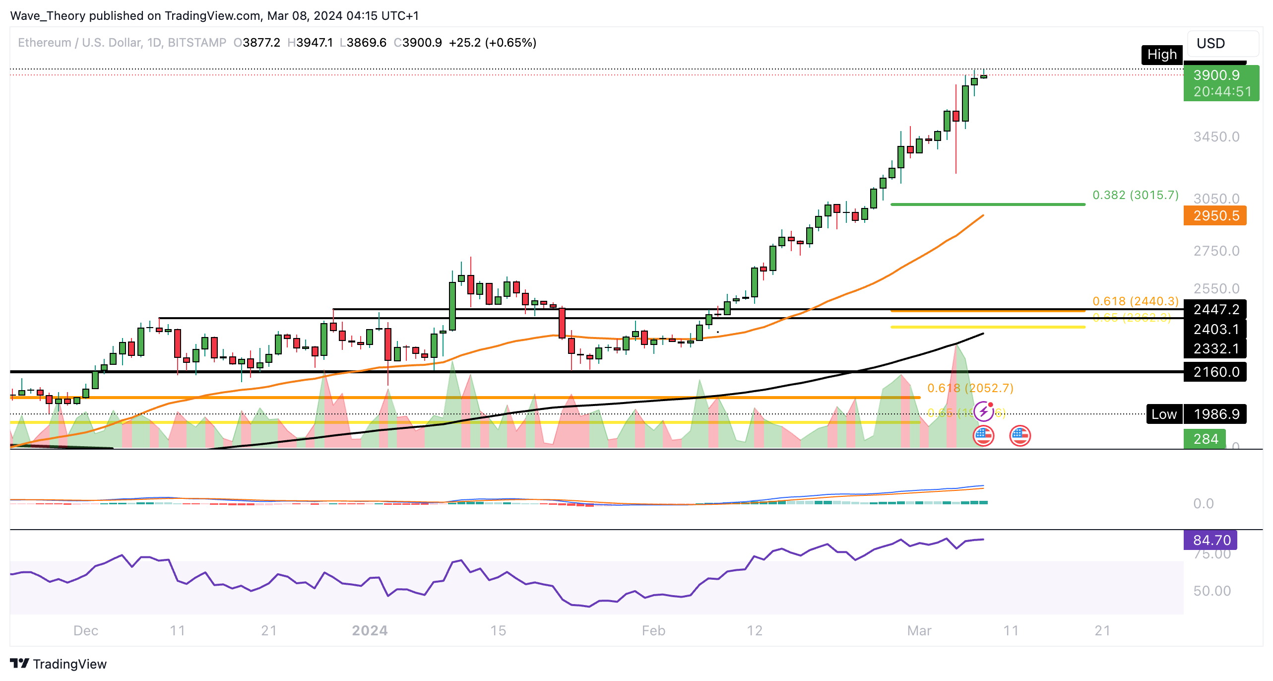Der Ethereum Kurs steht auf 3.900 USD und hat damit das Golden Ratio Niveau überwunden