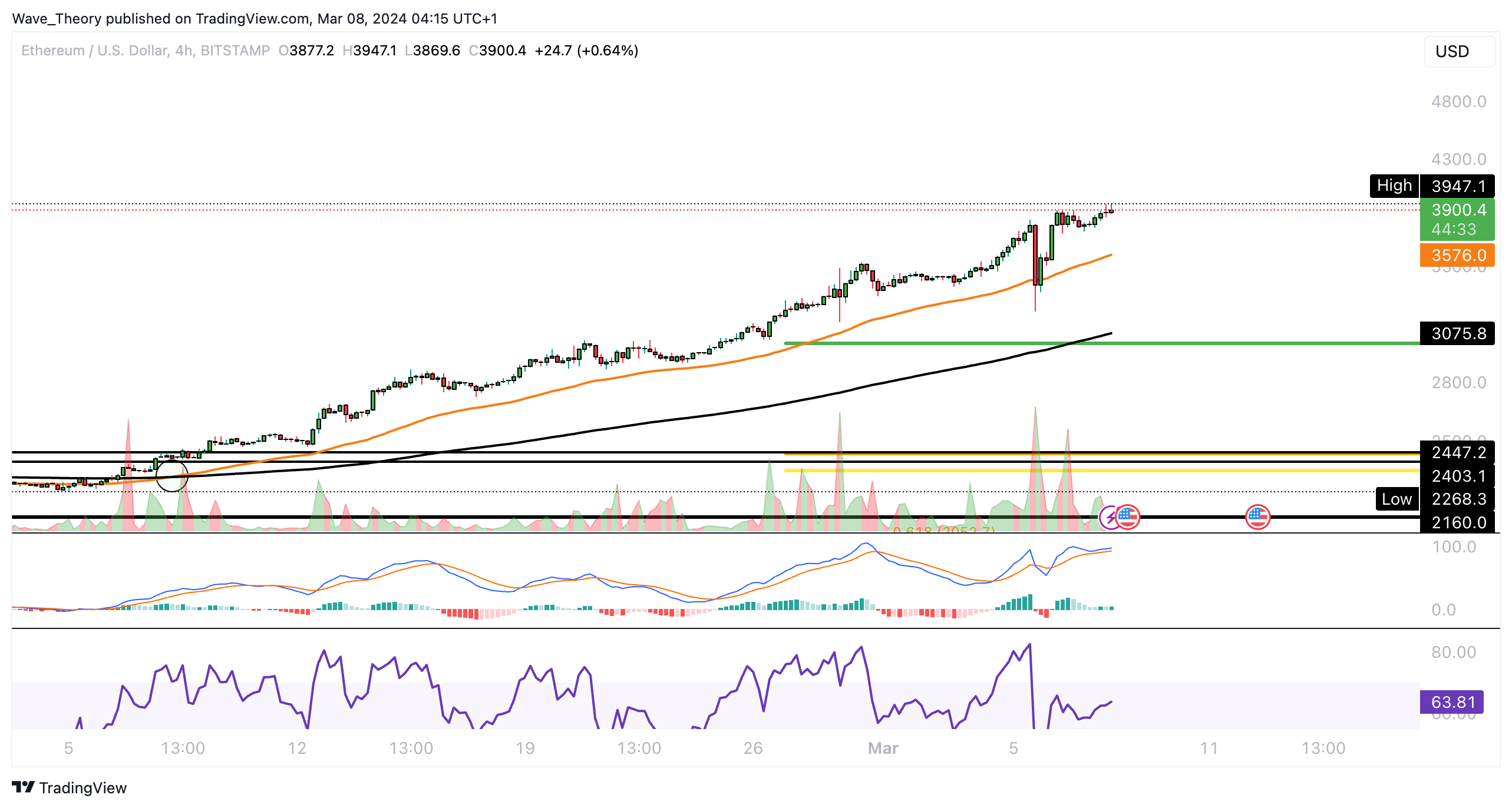 Auch im 4H-Chart zeigt sich der Ethereum Kurs bullisch