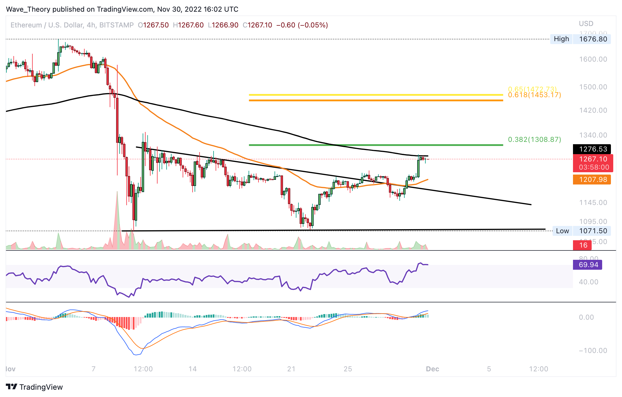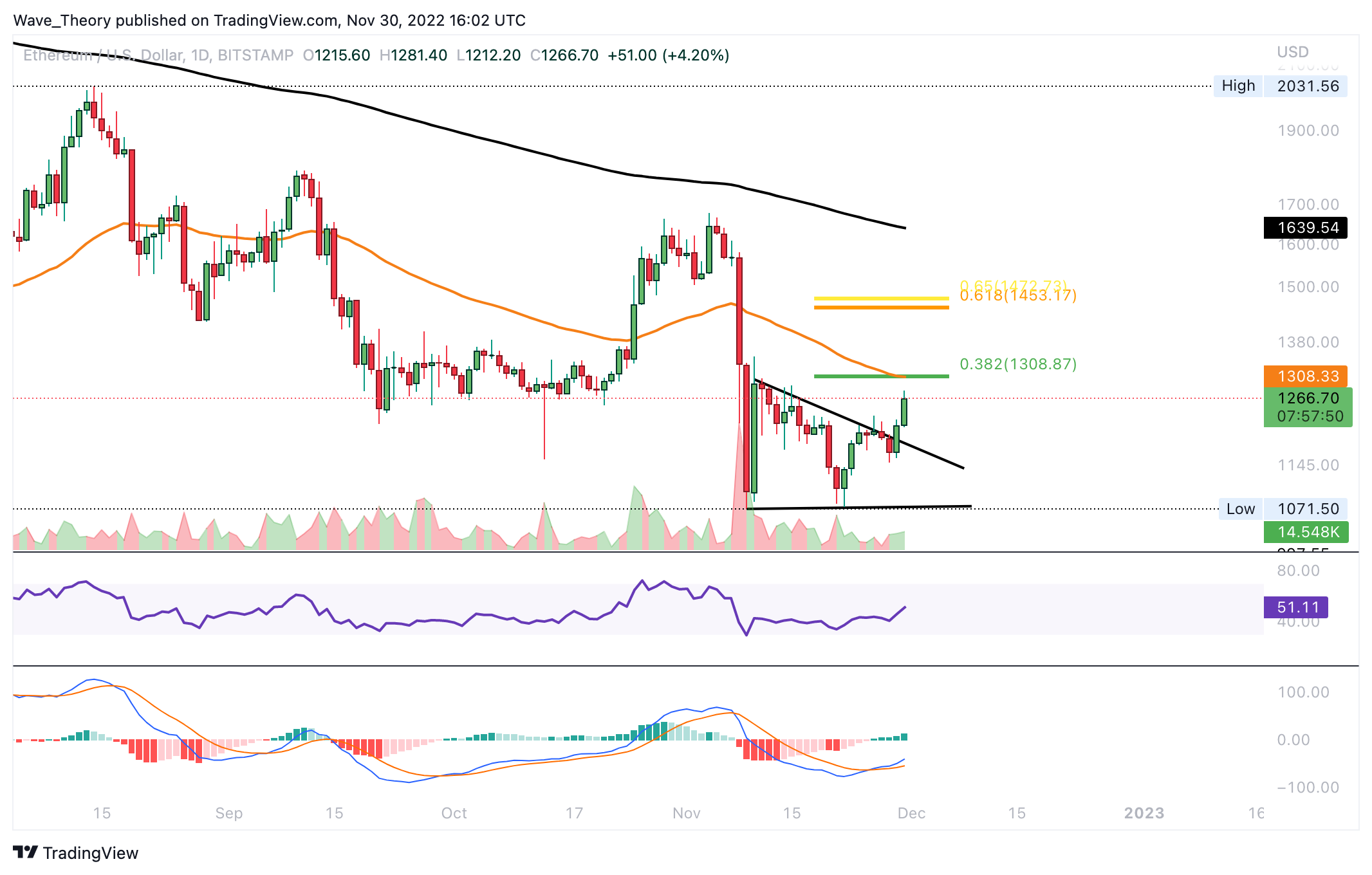 Der Ethereum Kurs könnte jetzt zum 50-Tage-EMA bei rund 1.308 USD steigen