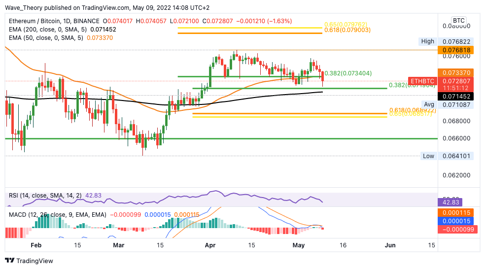 Gegen BTC stößt der Ethereum Kurs auf Unterstützung