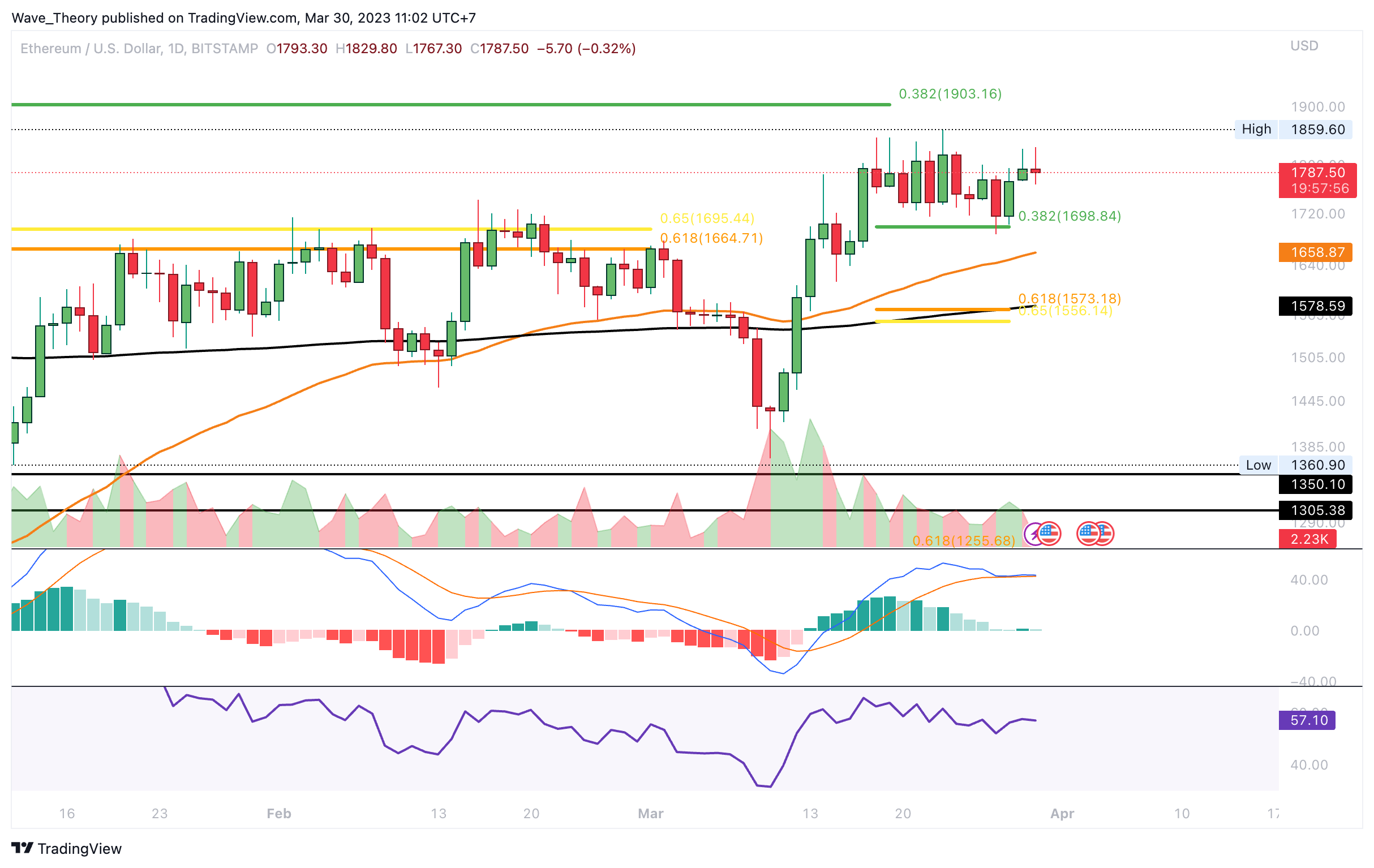 In der letzten ETH Kurs Prognose vom 24. März 2023 analysierten wir: