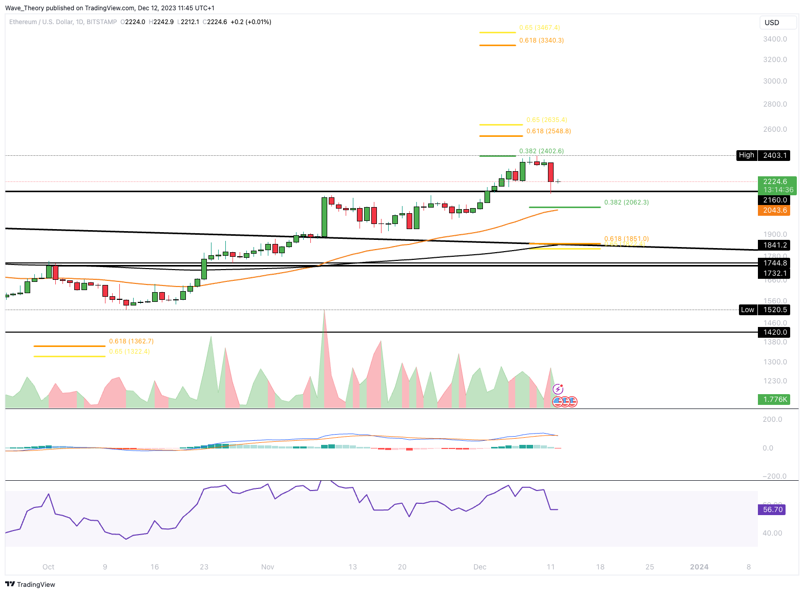 Doch womöglich wird Ethereum die Korrektur fortsetzen, um die 0,382 Fib Unterstützung bei rund 2.062 USD zu erreichen. Dort fungiert der 50-Tage-EMA als zusätzliche Unterstützung.