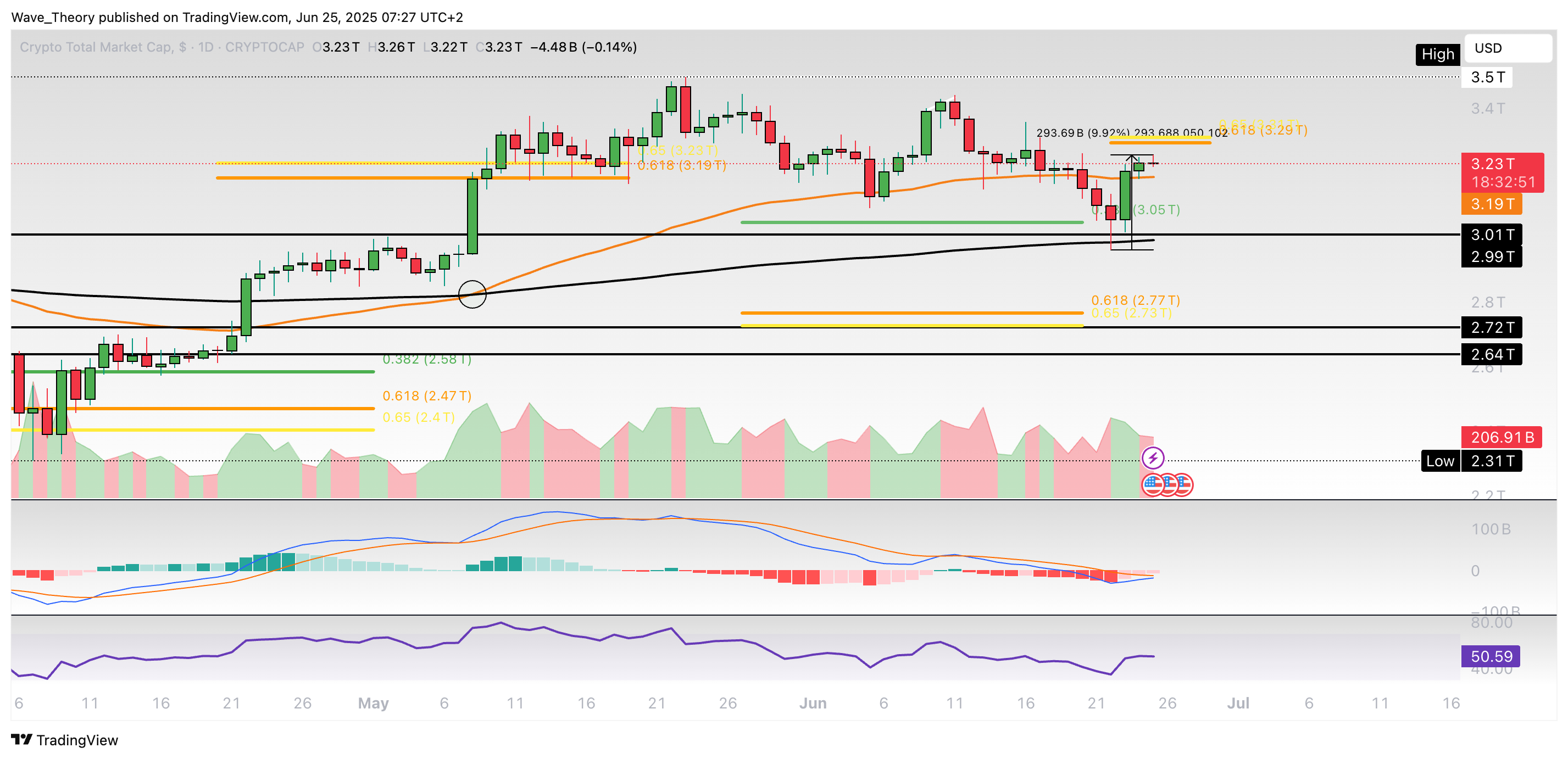 Krypto-Markt Prognose für Mittwoch, 25. Juni 2025: Der Markt konnte an der 200-Tage-EMA Unterstützung bullisch abprallen. Folgt mehr Aufwärtsbewegung?