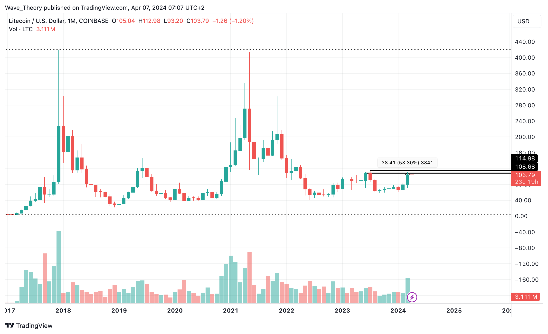 Insgesamt ist Litecoin noch weit entfernt vom ATH von rund 420 USD.
