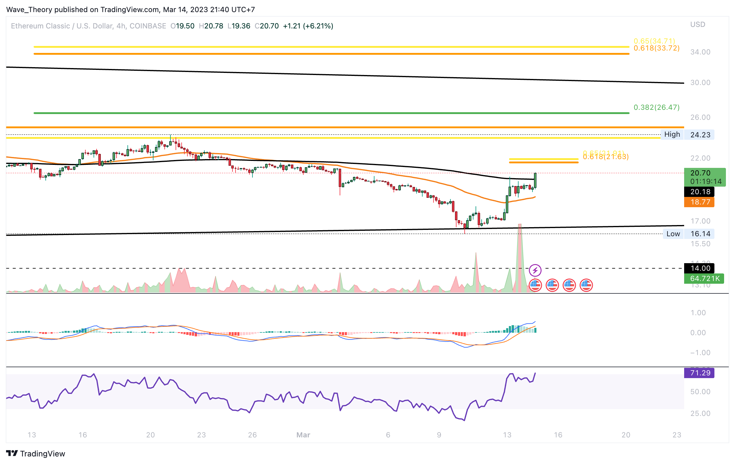 - Bei erfolgreichem Widerstandsdurchbruch wartet bei rund 26,6 USD der nächste signifikante Fib Widerstand auf Ethereum Classic