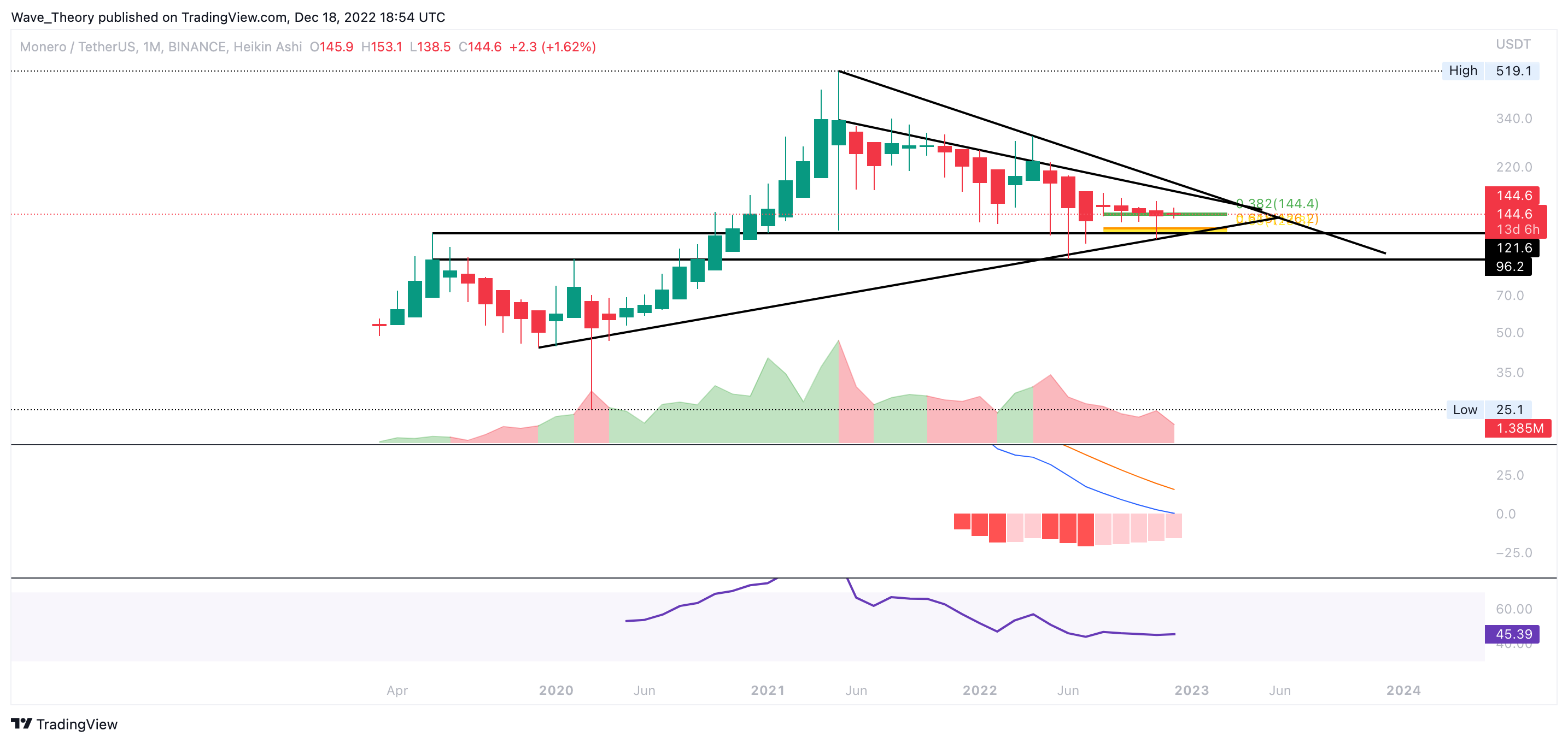 Ansonsten findet XMR zwischen 96 USD und 122 USD die nächste signifikante Unterstützung.