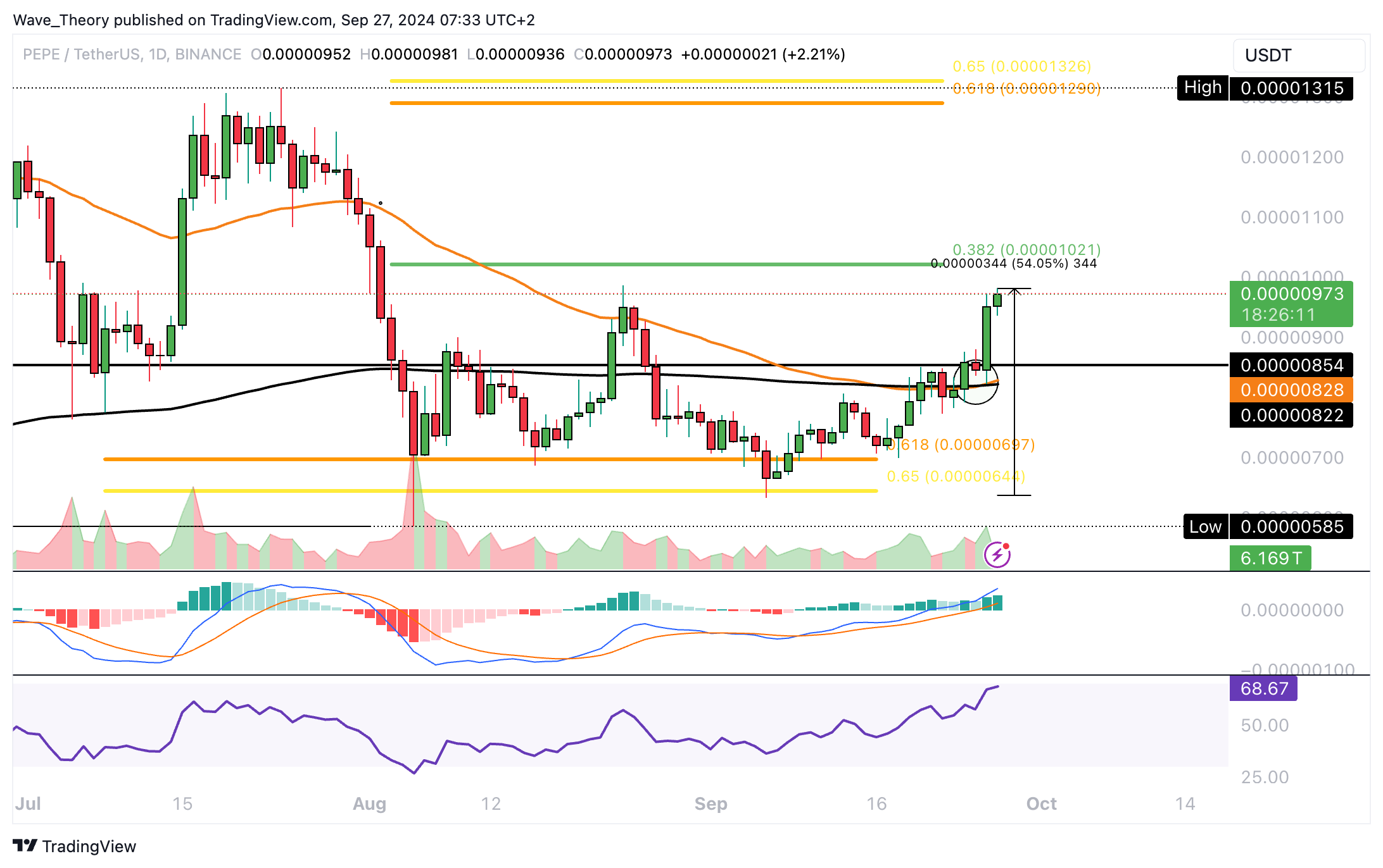 Der PEPE Kurs ist in den letzten Tagen rund 54 % gestiegen