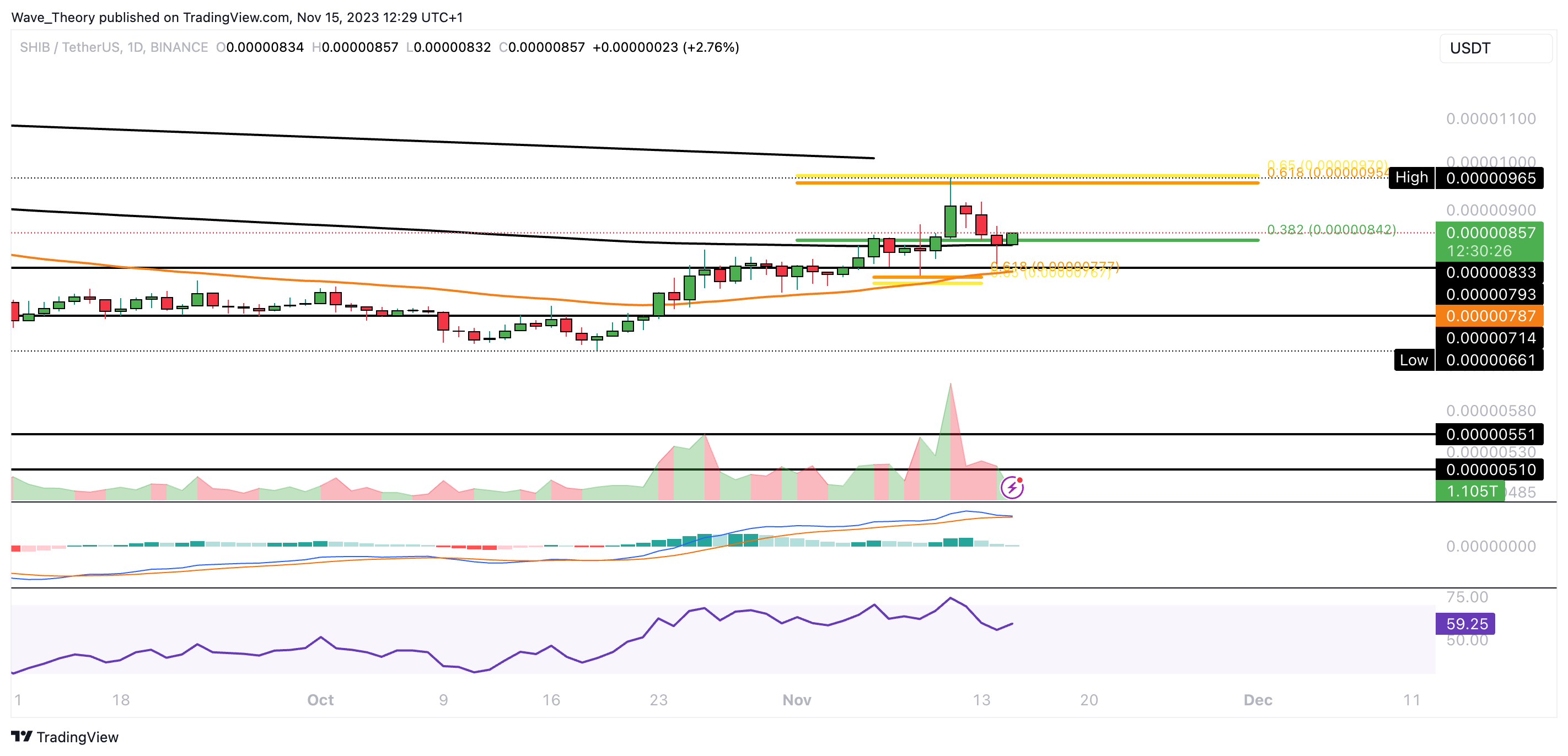 Der Shiba Inu Kurs wurde am Golden Ratio Widerstand bei rund 0,0000096 USD bärisch abgewiesen