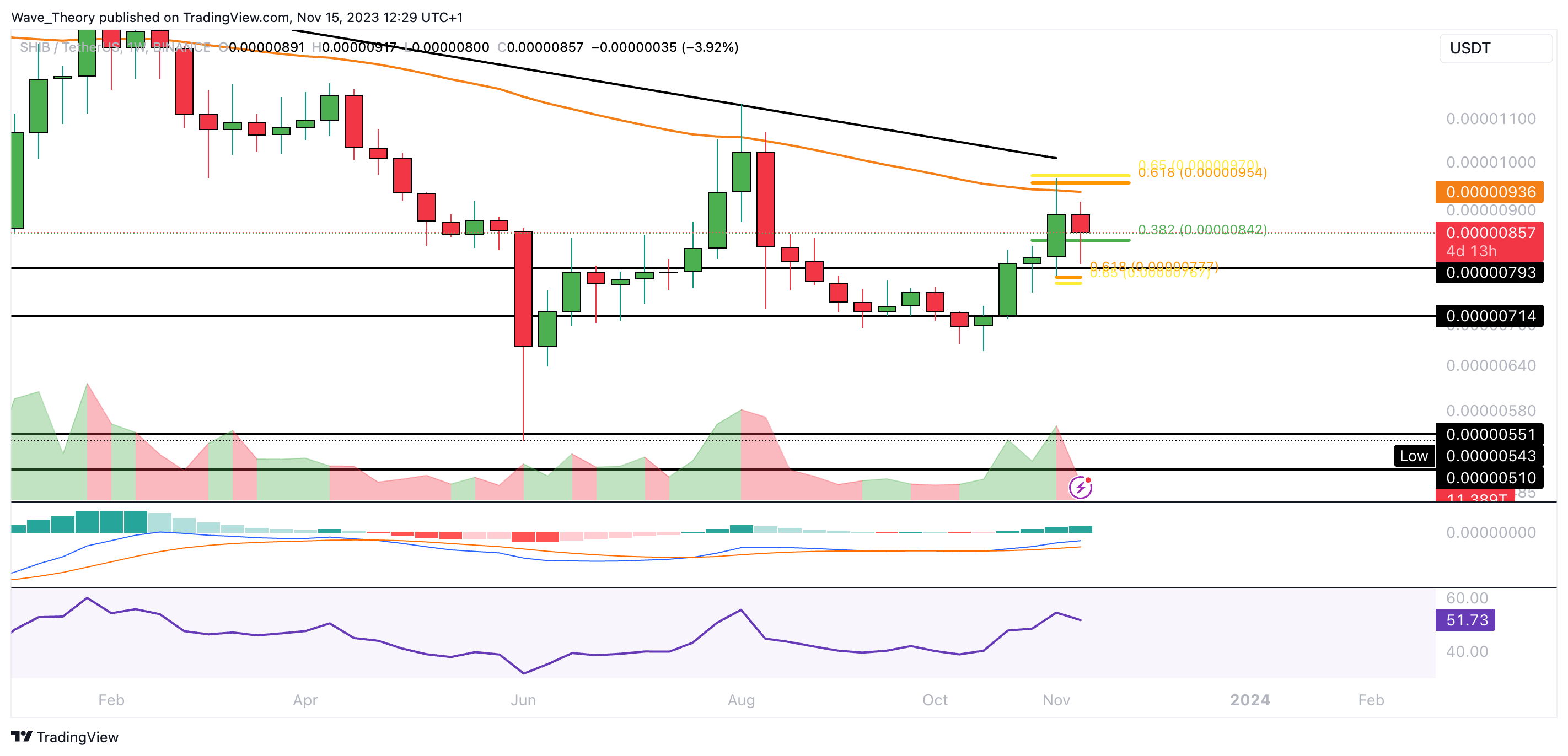 Sponsored SponsoredDabei findet Shiba Inu bei rund 0,00000842 USD signifikante Fib Unterstützung. Sollte diese Unterstützung nicht halten, wartet bei rund 0,0000077 USD die nächste signifikante Fib Unterstützung.
