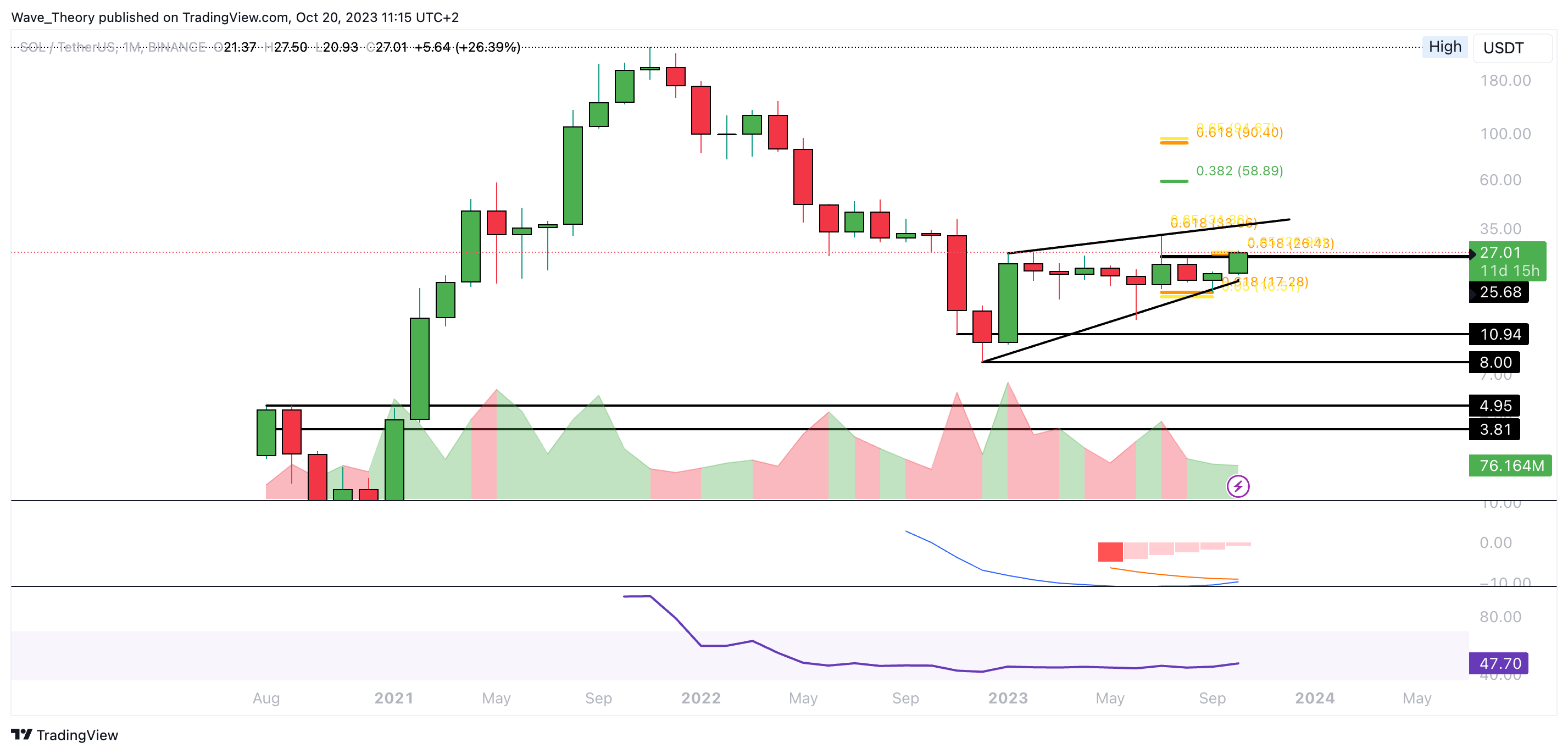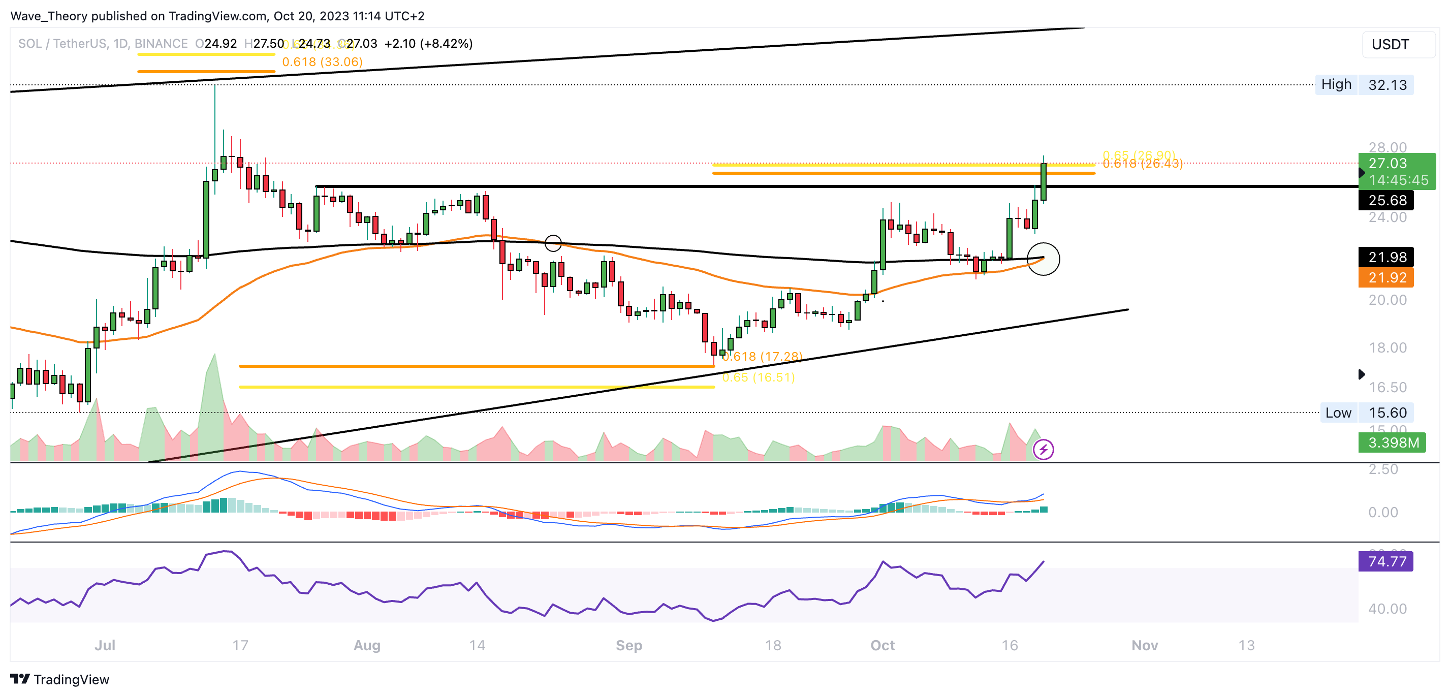 Der Solana Kurs befindet sich jetzt an wichtigem Golden Ratio Widerstand bei rund 27 USD