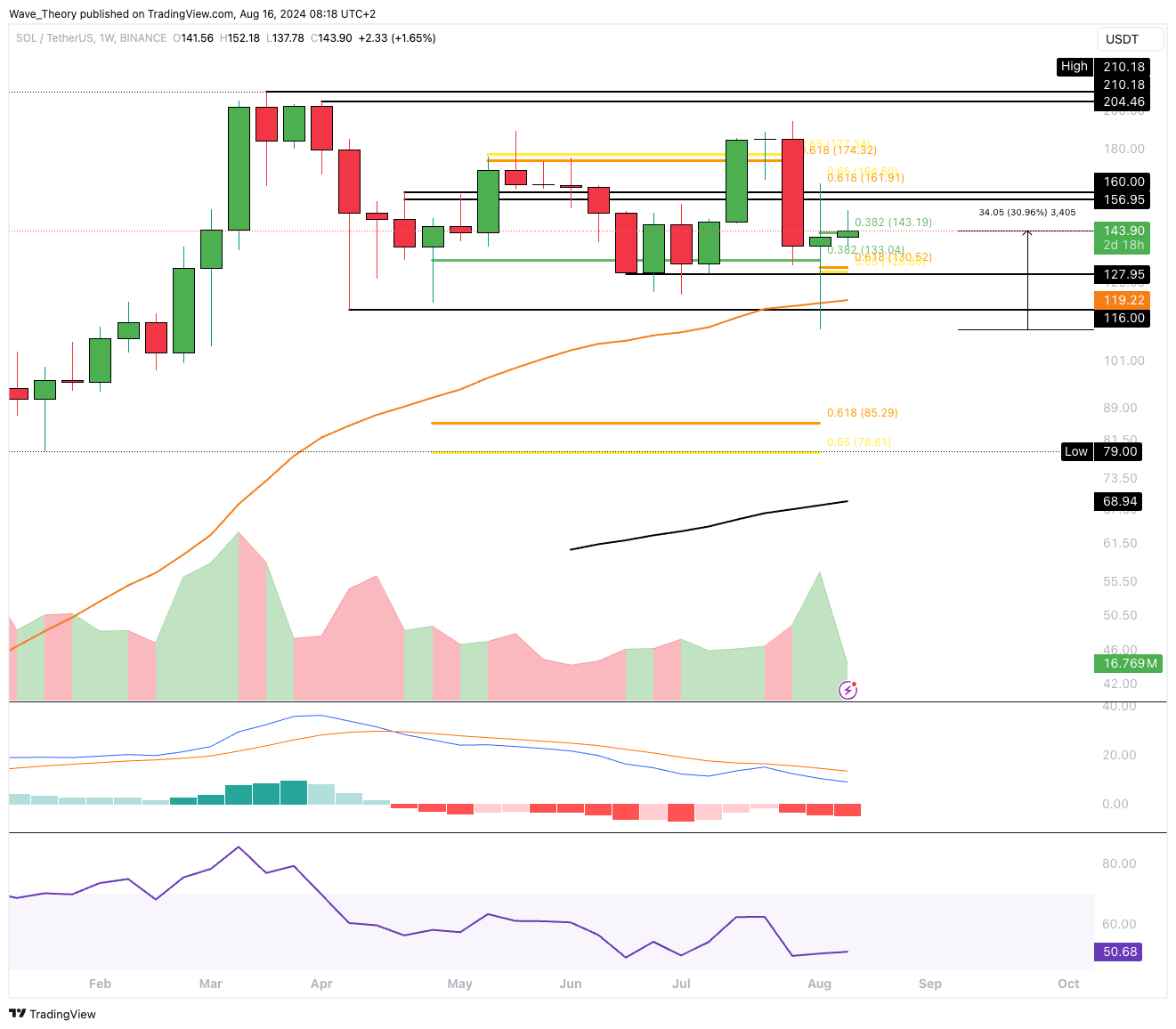 Sollte Solana die Golden Ratio bei rund 154 USD brechen, wartet bei rund 162 USD der nächste signifikante Widerstand. Nach unten hin wartet spätestens zwischen rund 116 USD und 128 USD signifikante Unterstützung.