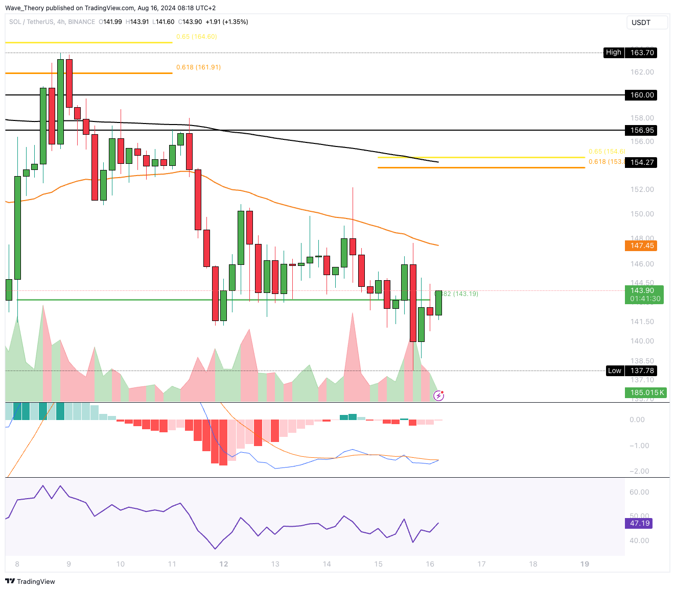 Der Solana Kurs hält sich an der 0,382 Fib Unterstützung bei rund 143 USD