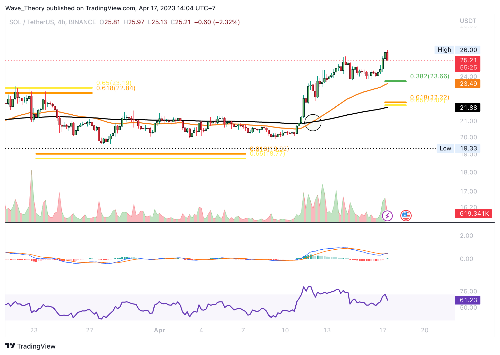- Kurssturz nahe der Golden Ratio Unterstützung bei ~19 USD