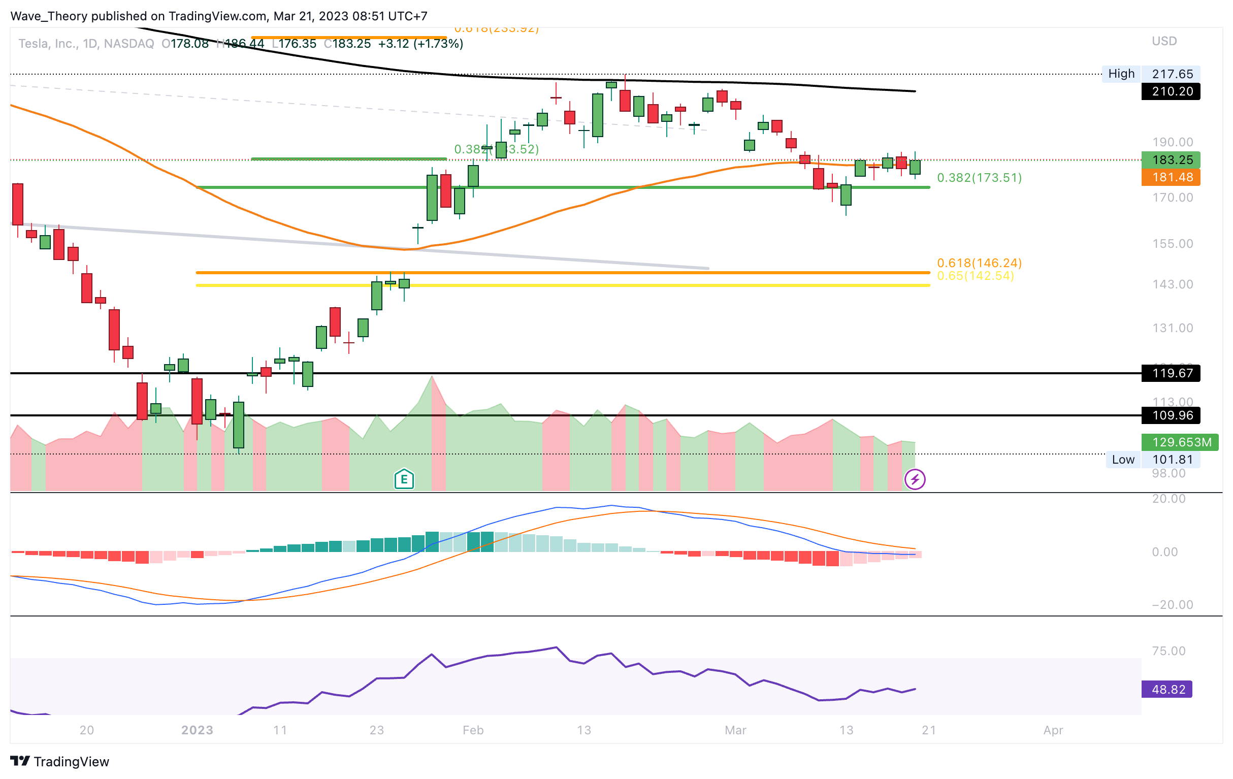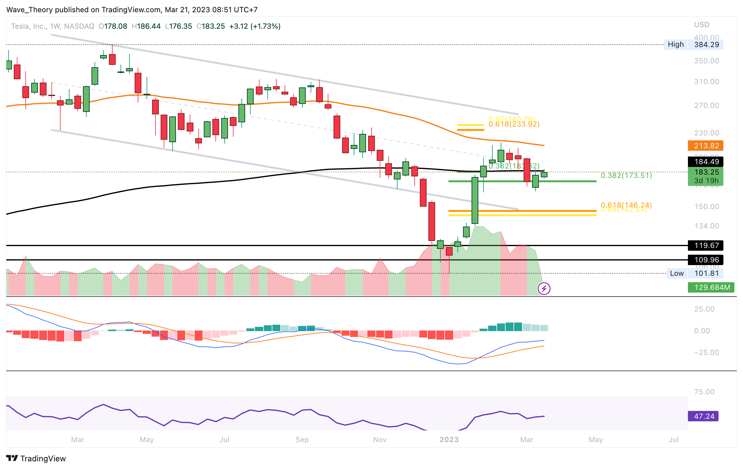 - Bricht Tesla diesen Widerstand, wartet am 50-Wochen-EMA und der Golden Ratio zwischen rund 223 USD und rund 235 USD der nächste signifikante Widerstand