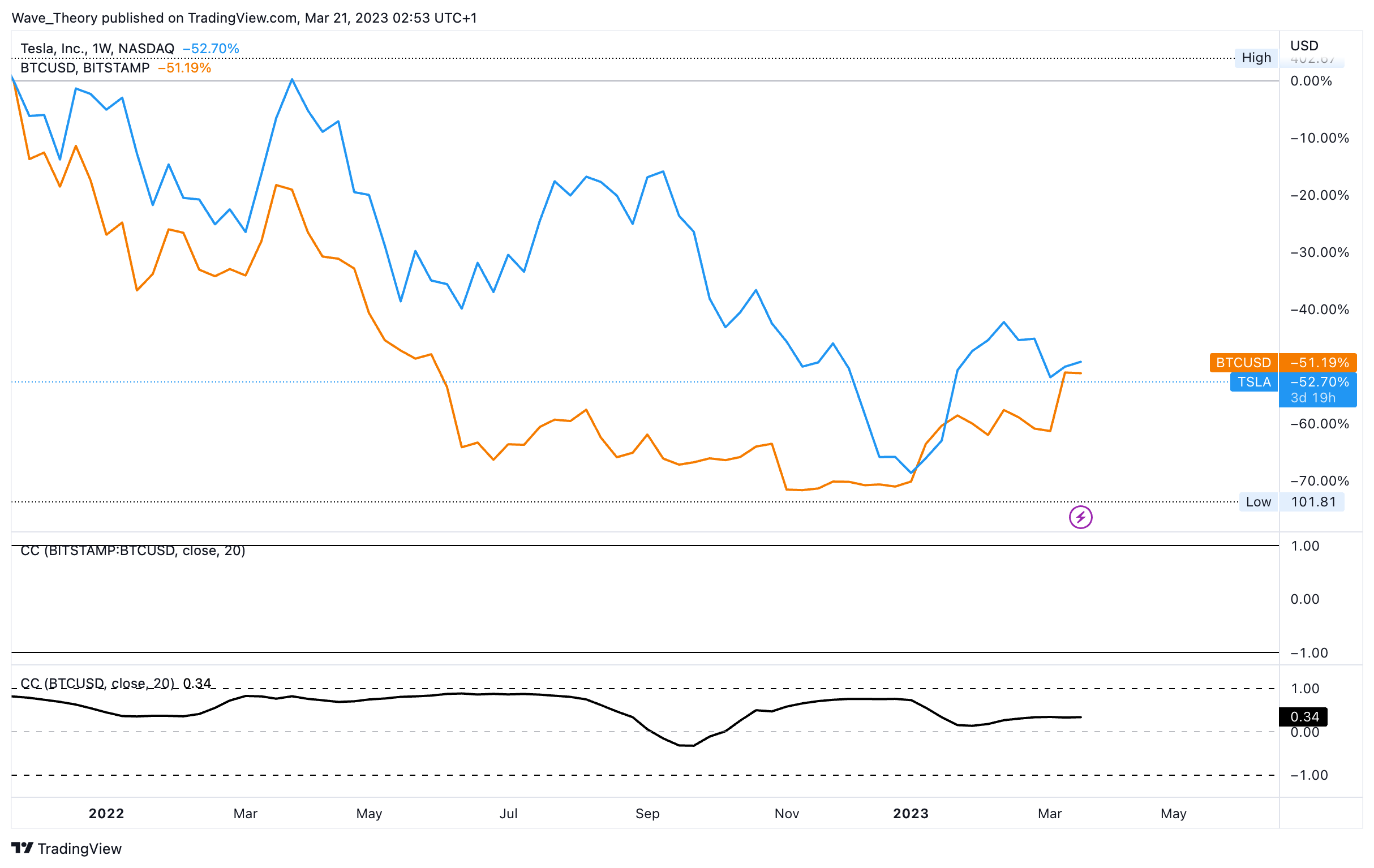 Der Bitcoin Kurs und die Tesla Aktie weisen keine Korrelation auf