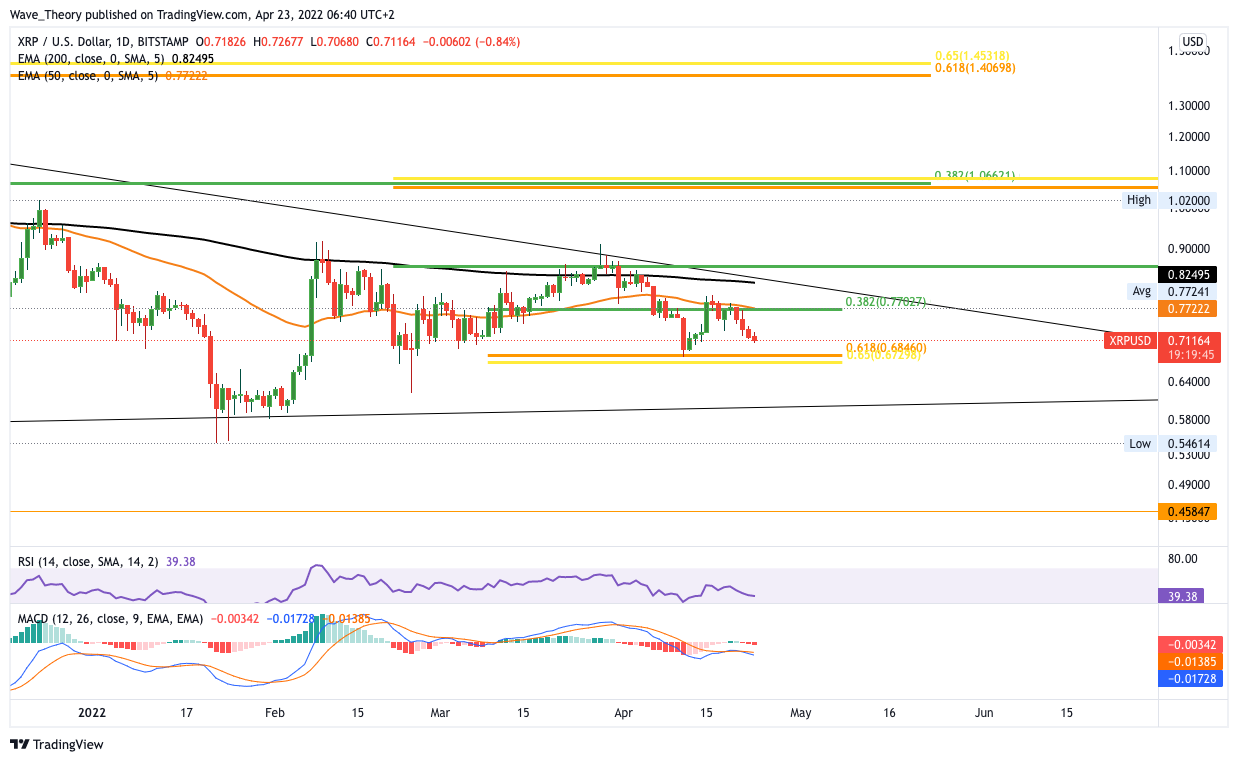 XRP Kurs kehrt erneut zur Golden Ratio Unterstützung bei 0,68 USD zurück