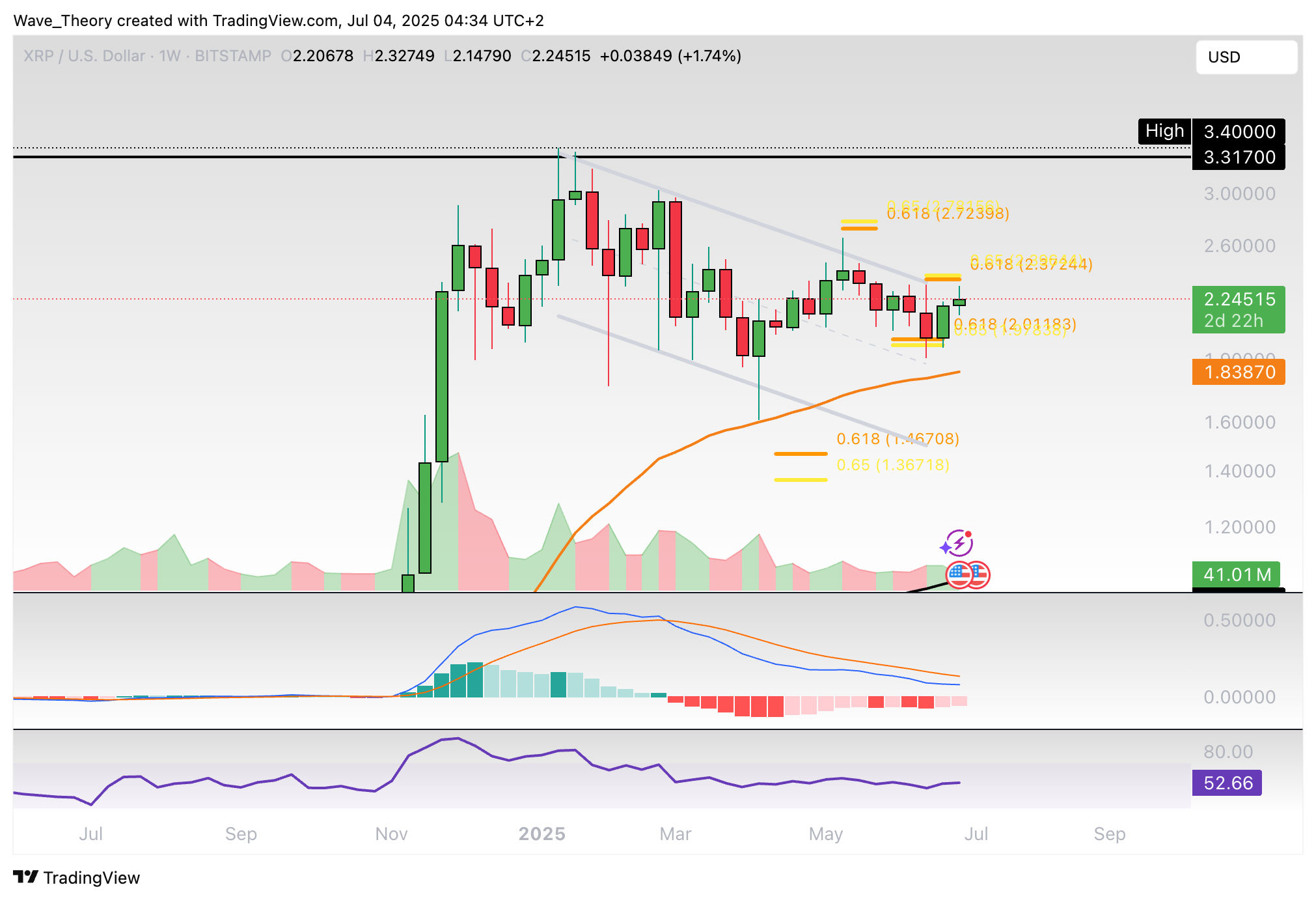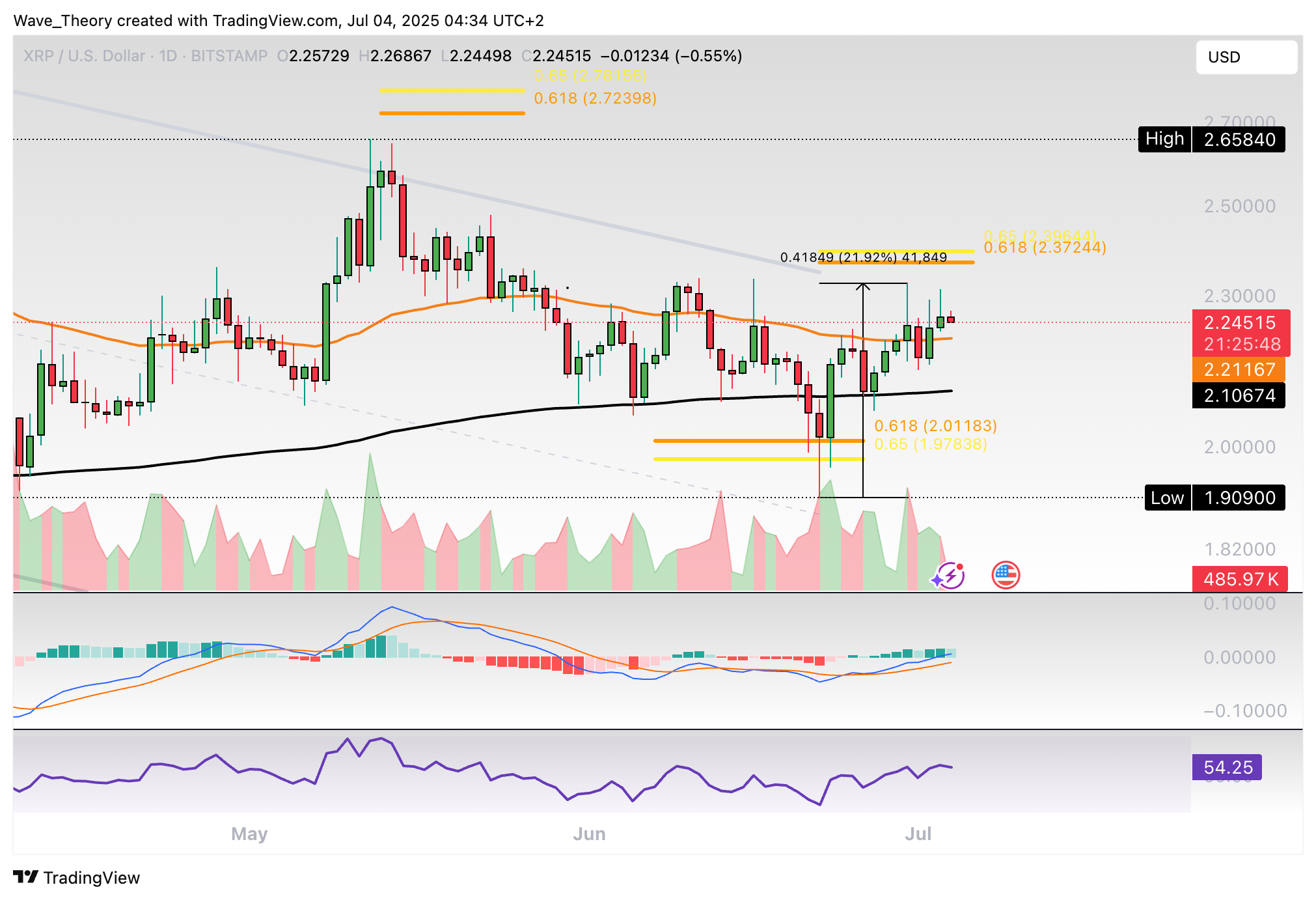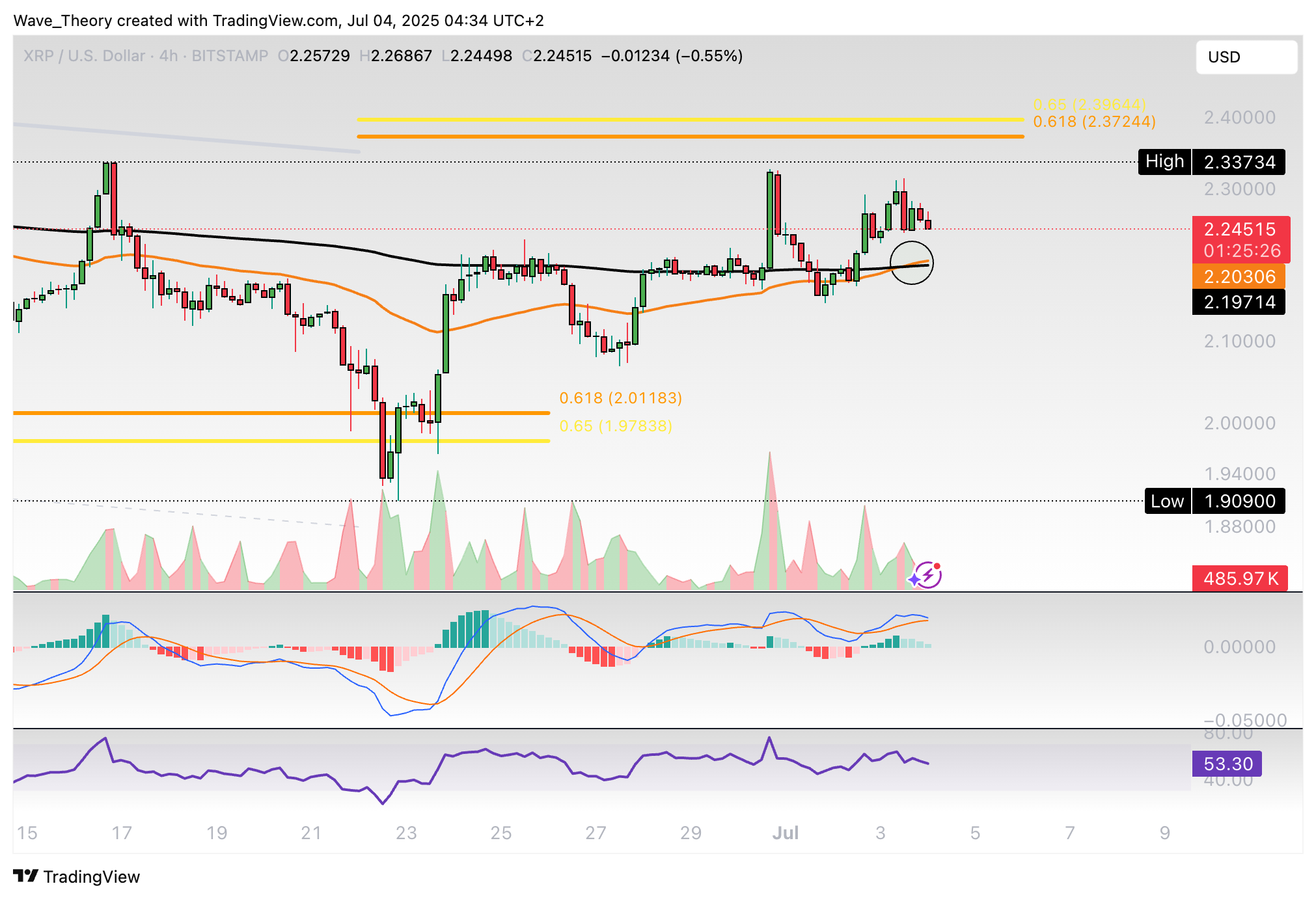 Ripple-Prognose für Freitag, 04. Juli 2025: Der XRP Kurs konnte an der Golden Ratio Unterstützung bullisch abprallen. Bricht er jetzt bullisch aus?