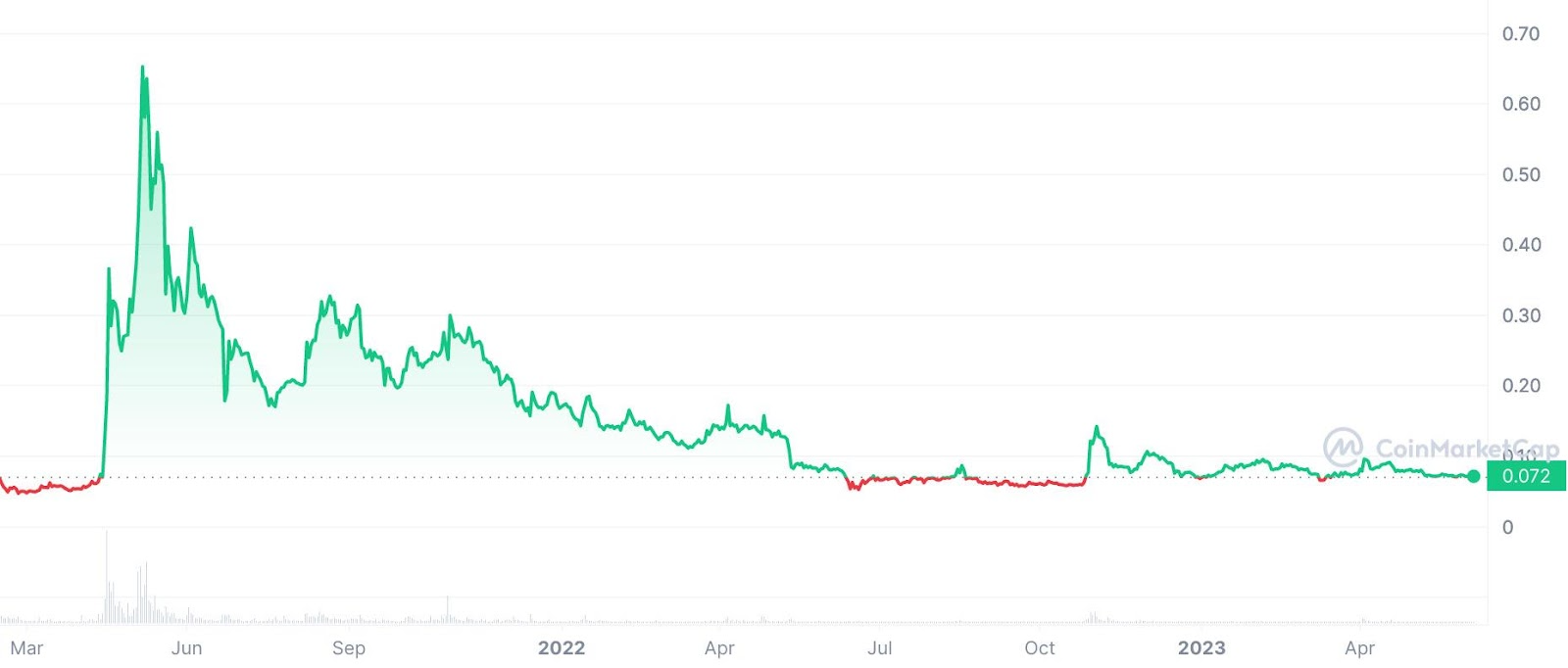 Ursprünglich als Witz eingeführt und oft unterschätzt, hat Dogecoin seinen Weg in den Kryptowährungsmarkt gefunden und eine beachtliche Fangemeinde gewonnen. Nach einem rauen letzten Jahr, in dem der Kurs stark gefallen ist, könnte dieser “Meme Coin” jetzt an der Schwelle zu einem beeindruckenden Comeback stehen. Mit einem aktuellen Preis von etwa 0,072 Dollar pro Coin, könnte ein Anstieg auf sein Allzeithoch von 0,652 Dollar fast 1000 % Rendite bedeuten.