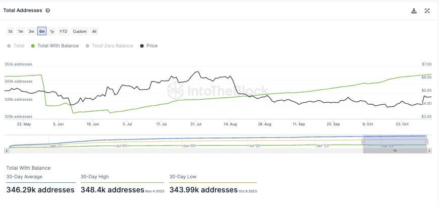 Das Uniswap Netzwerk verzeichnet dabei ein beständiges Wachstum. So liegt hier ein klarer Aufwärtstrend vor. In den letzten 30 Tagen wurden dabei rund 346.000 Uniswap Adressen gezählt, die ein UNI Token Guthaben aufweisen.